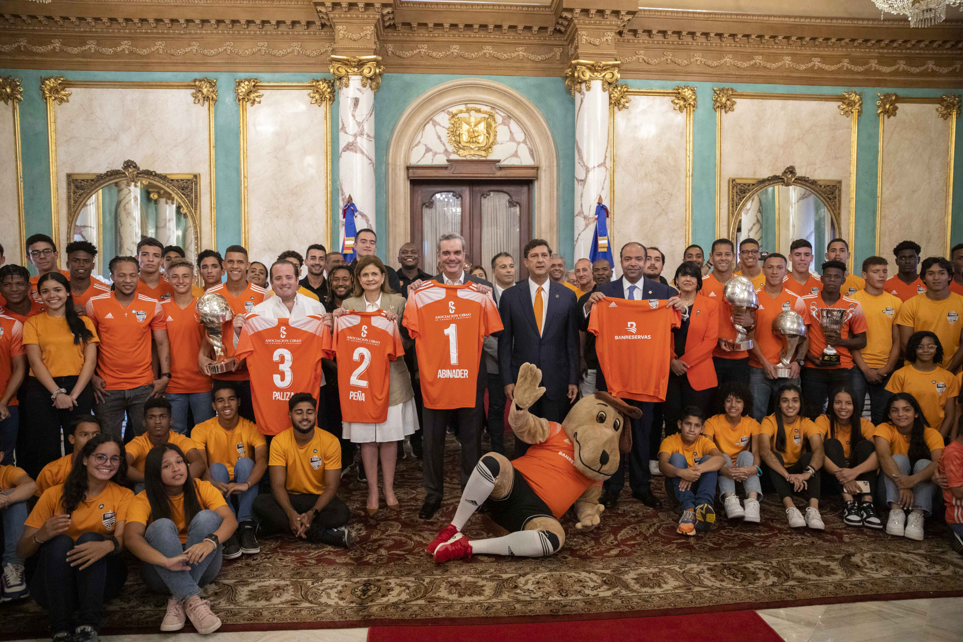 El presidente Luis Abinader, en compañía de la vicepresidenta Raquel Peña, recibió la visita del equipo Cibao FC, campeones de la Liga Dominicana de Fútbol, en la temporada 2022. Santo Domingo, República Dominicana, 21 de Noviembre 2022. Vp/ Amehd Gitte