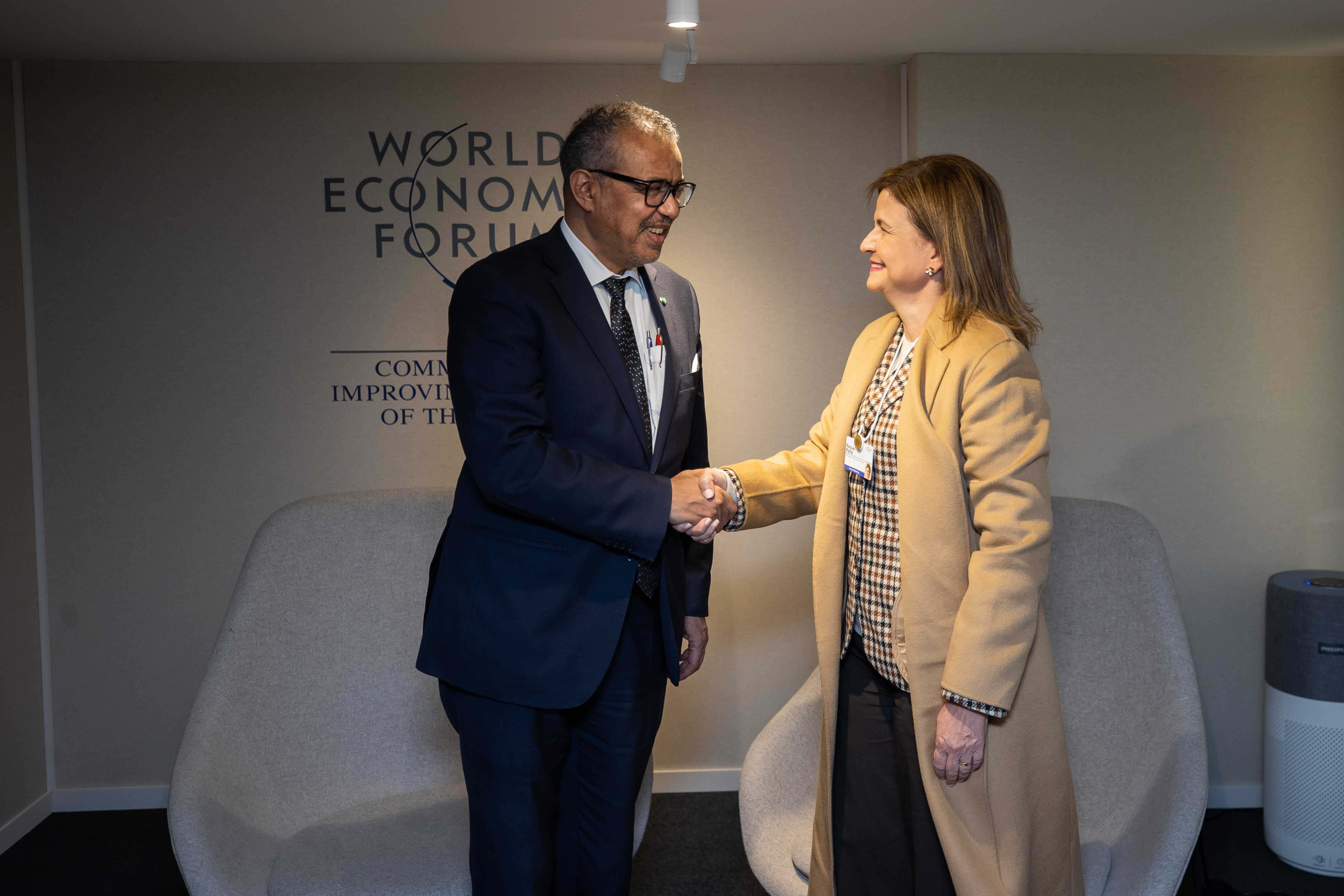 Durante el desarrollo del Foro Económico Mundial, la vicepresidenta Raquel Peña sostuvo una reunión bilateral con el doctor Tedros Adhanom Ghebreyesus, director general de la Organización Mundial de la Salud. Davos, Suiza, 17 de Enero 2023. Vp/ Jhon Escalante