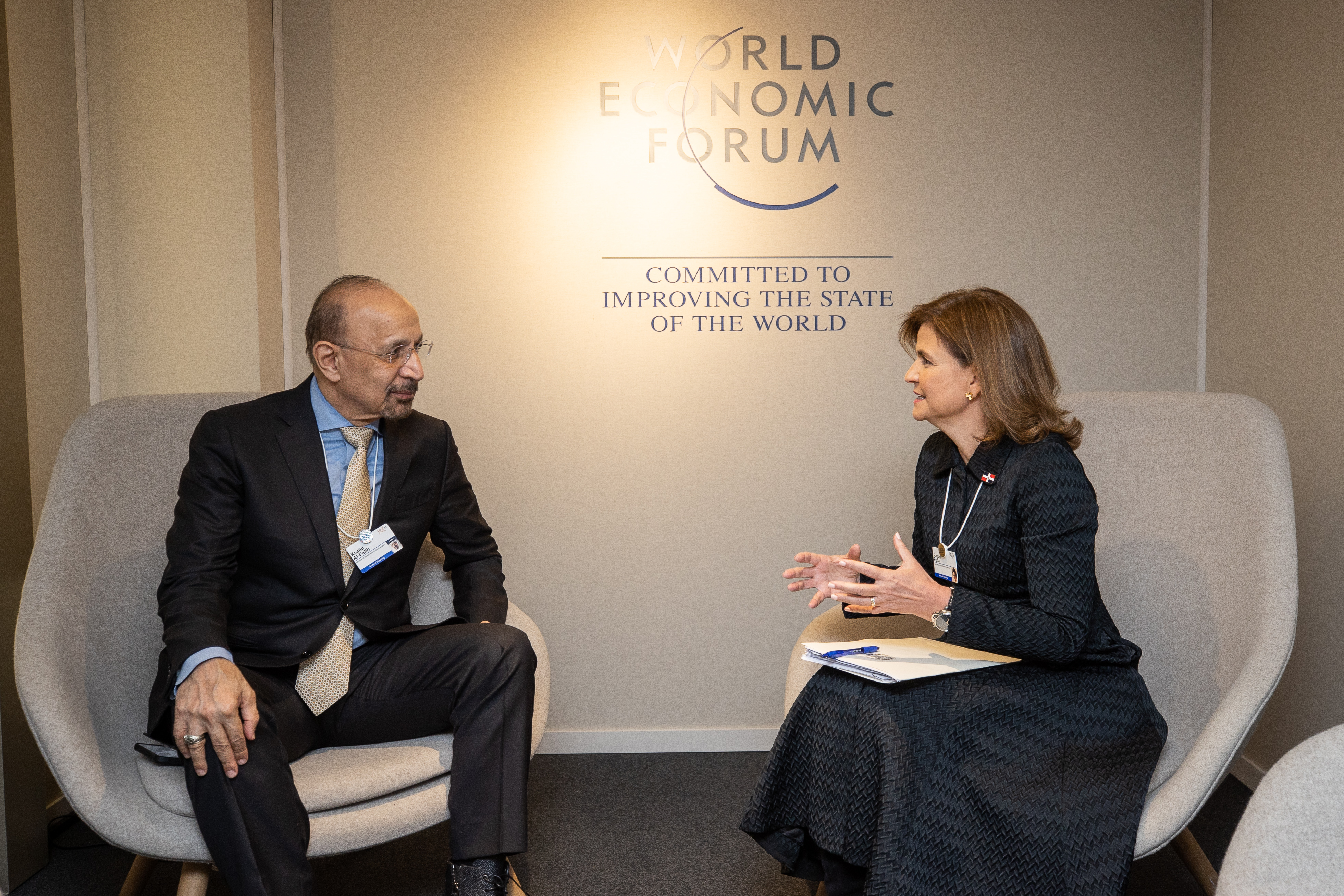 La vicepresidenta Raquel Peña sostuvo un encuentro con su excelencia Khalid Al-Falih, ministro de Inversiones del reino de Arabia Saudita, durante el Foro Económico Mundial. Davos, Suiza, 18 de Enero 2023. Vp/ Jhon Escalante