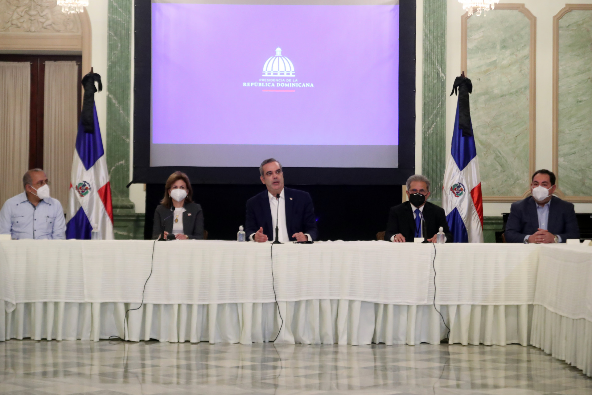 El presidente Luis Abinader junto a la vicepresidenta Raquel Peña en su calidad de coordinadora del Gabinete de Salud firma un «Acuerdo con el Colegio Médico Dominicano (CMD)». Salón Verde, Palacio Nacional. Santo Domingo. República Dominicana. 21 de Diciembre del 2020. VP/Ricardo Rojas