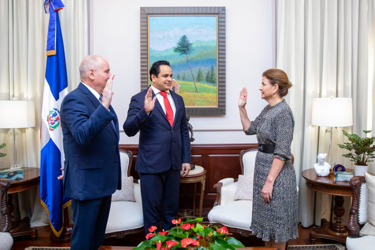 La vicepresidenta Raquel Peña juramentó a los señores Manuel Conde Cabrera y José Pedro Díaz González como miembros del Consejo Unificado de las Empresas Distribuidoras de Electricidad. Santo Domingo, República Dominicana, 24 de Enero 2022. Vp/ Amehd Gitte