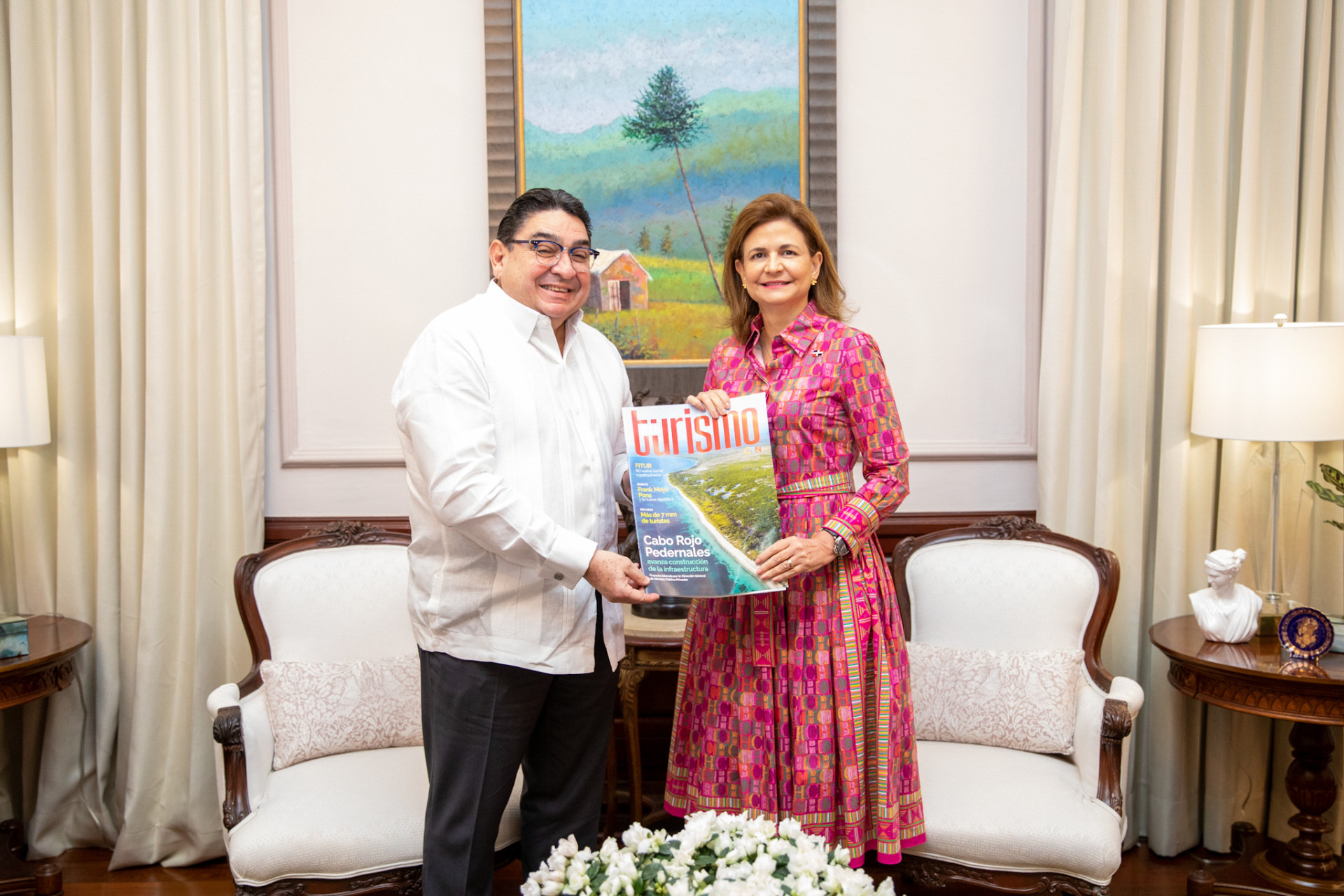 La vicepresidenta Raquel Peña recibió la visita del señor Miguel Calzada, quien le hizo entrega del número más reciente de la revista Puro Turismo, proyecto editorial presentado en la pasada edición de FITUR 2023 y que promueve nuestros atractivos turísticos. Santo Domingo, República Dominicana, 09 de Febrero 2022. Vp/ Amehd Gitte