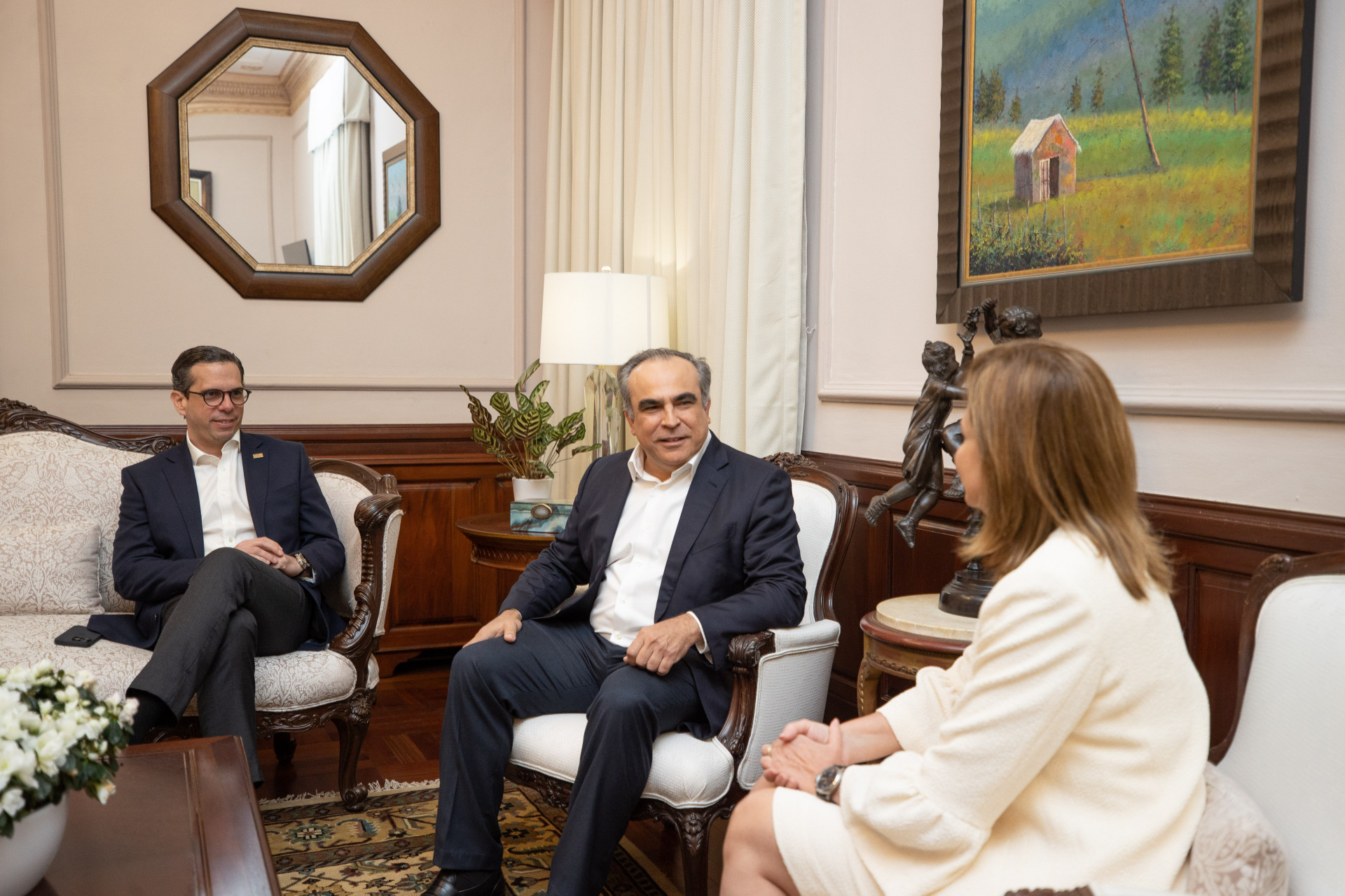 La vicepresidenta Raquel Peña recibió la visita de cortesía del presidente del Conep, el señor Celso Juan Marranzini y el vicepresidente ejecutivo de esta entidad, el señor Cesar Dargam, En el encuentro, conversaron sobre las acciones que se están ejecutando en esta organización, con el fin de seguir impulsando el sector empresarial. Santo Domingo, República Dominicana, 10 de Febrero 2023. Vp/ Jhon Escalante