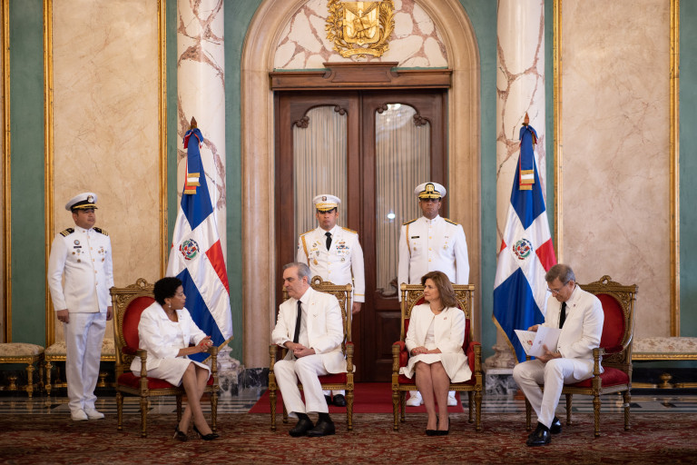 El presidente Luis Abinader, junto a la vicepresidenta Raquel Peña y el ministro de Relaciones Exteriores el señor Roberto Álvarez, encabezó el acto de presentación de las cartas credenciales de nuevos representantes diplomáticos que comienzan sus labores en el país. Santo Domingo, República Dominicana, 14 de Febrero 2023. Vp/ Jhon Escalante