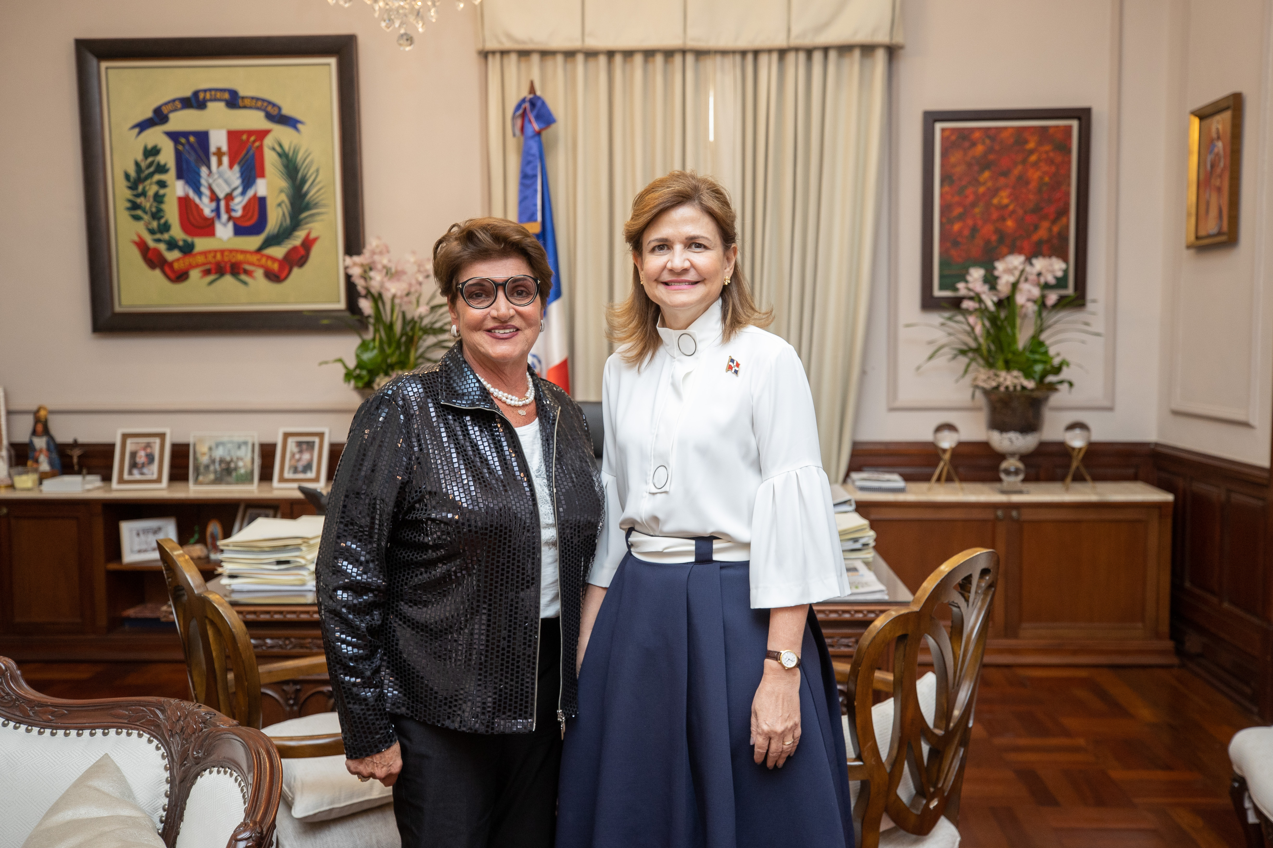 La vicepresidenta Raque Peña sostuvo un encuentro con la empresaria venezolana, la Sra. Fanny Cohen, donde intercambiaron ideas sobre el desarrollo económico de República Dominicana y el liderazgo empresarial en América Latina. Santo Domingo, República Dominicana. 223 de Febrero 2023. Vp/ Jhon Escalante