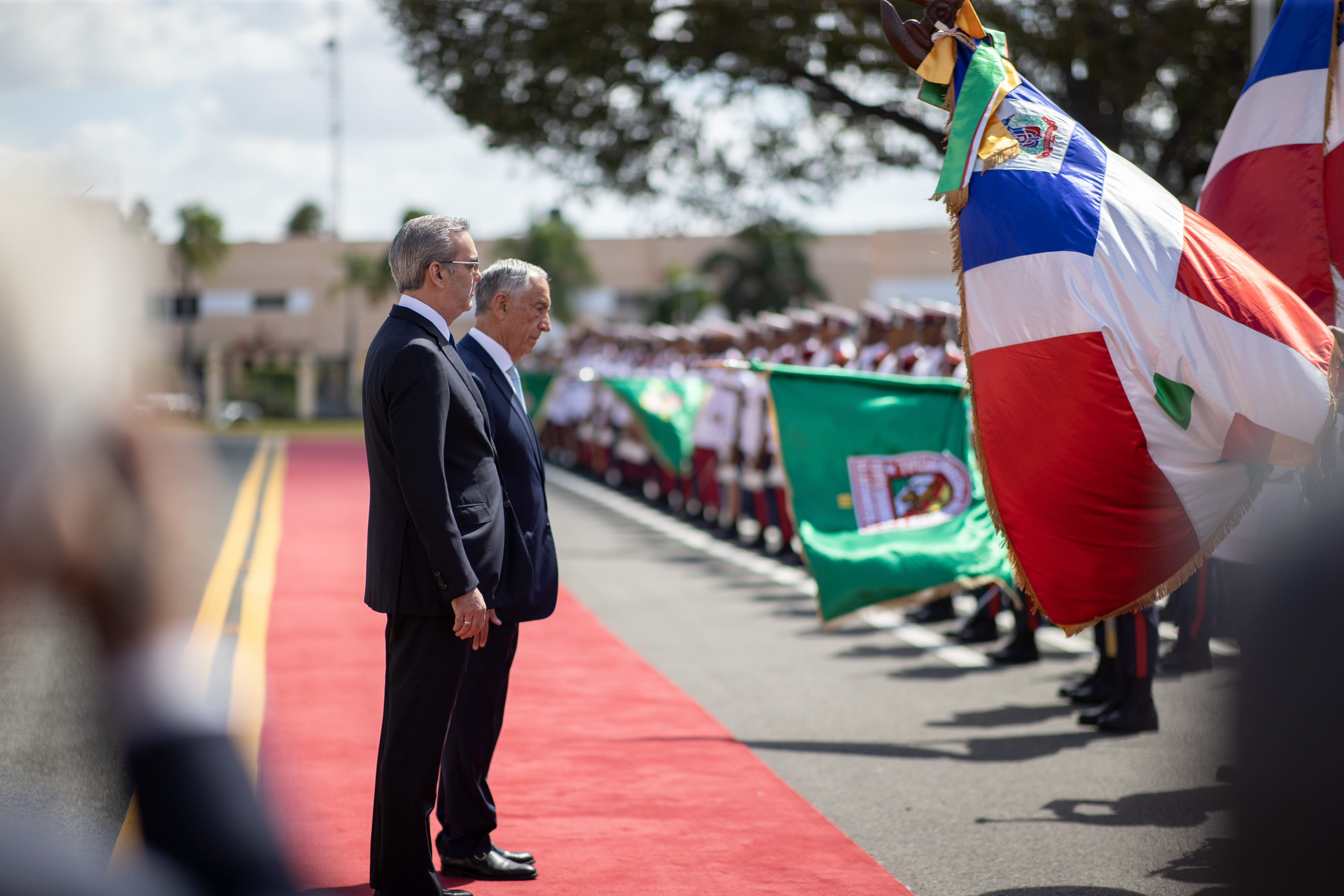 El presidente Luis Abinader en compañía de la vicepresidenta Raquel Peña y otros funcionarios, recibió en el Palacio Nacional al presidente de Portugal, el señor Marcelo Rebelo de Sousa, quien se encuentra en el país para participar en la XXVIII Cumbre Iberoamericana de Jefas y Jefes de Estado y de Gobierno. Santo Domingo, República Dominicana, 23 de Marzo 2023. Vp/ Jhon Escalante