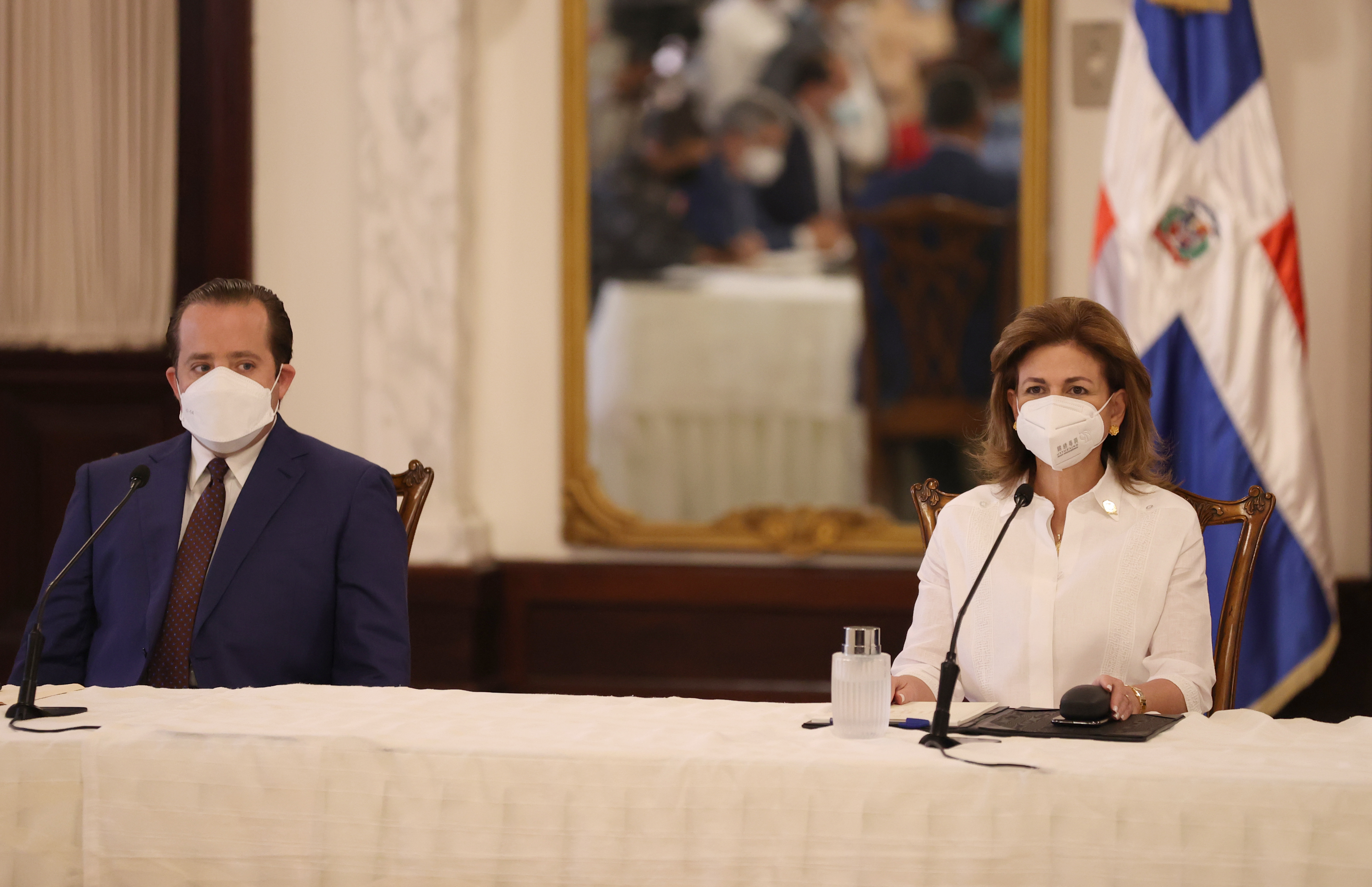 La vicepresidenta Raquel Peña encabeza rueda de prensa del Gabinete de Salud, también participan sus demás representantes. Salón Las Cariátides, Palacio Nacional.