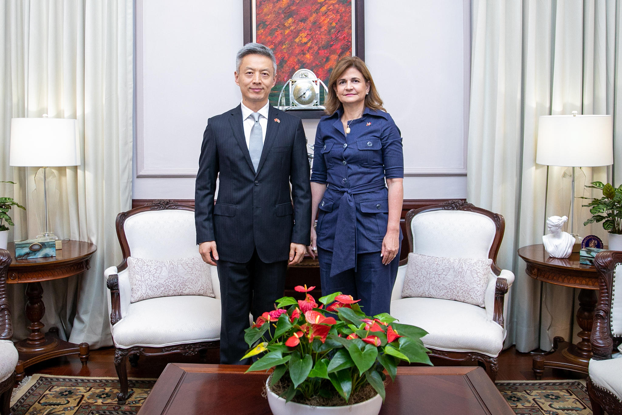 La vicepresidenta Raquel Peña recibió la visita de su excelencia Chen Luning, quien recientemente presentó sus Cartas Credenciales como embajador de la República Popular China en la República Dominicana. anto Domingo, República Dominicana, 09 de Junio 2023. Vp/ Amehd Gitte