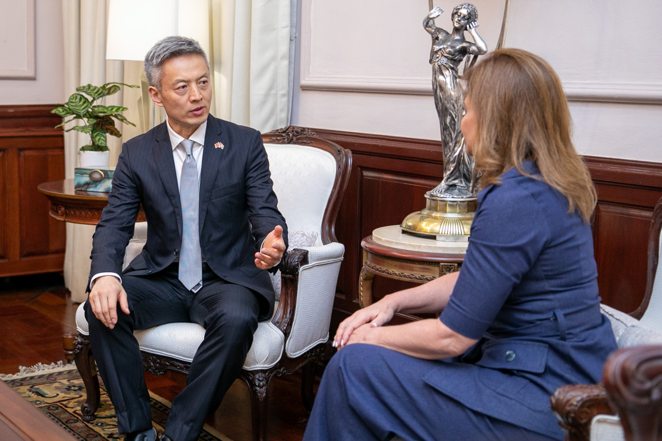 La vicepresidenta Raquel Peña recibió la visita de su excelencia Chen Luning, quien recientemente presentó sus Cartas Credenciales como embajador de la República Popular China en la República Dominicana. anto Domingo, República Dominicana, 09 de Junio 2023. Vp/ Amehd Gitte