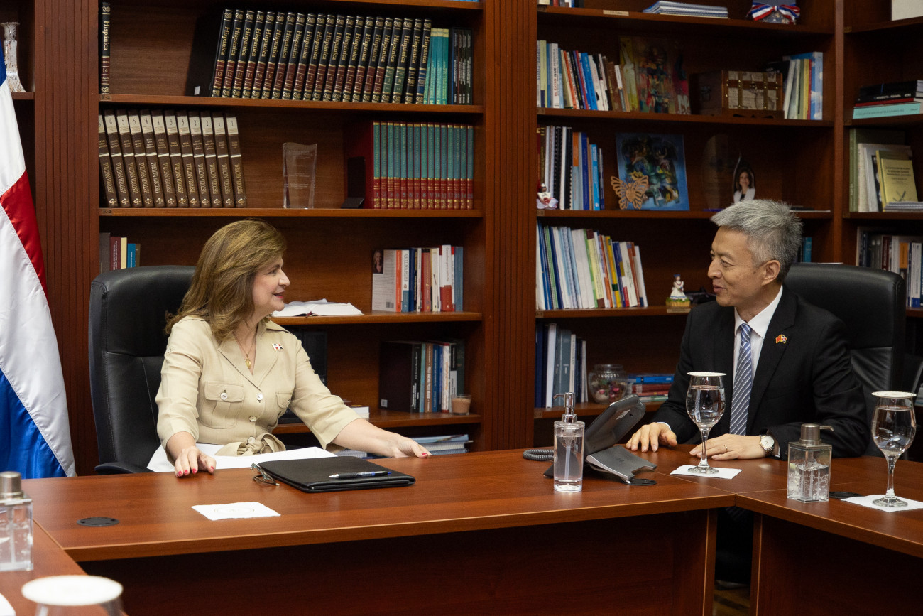 La vicepresidenta Raquel Peña sostuvo un encuentro con el representante de Negociaciones de Comercio Internacional de China, el Sr. Wang Shouwen, quien acudió junto al embajador de la República Popular China en la #RD, su excelencia Chen Luning, y otras autoridades de esa nación, para conversar sobre temas relacionados a inversión y comercio. Santo Domingo, República Dominicana, 03 de Julio 2023. Vp/ Jhon Escalante