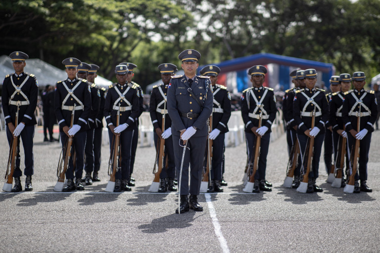 La vicepresidenta Raquel Peña encabezó el acto de graduación de 903 nuevos agentes adscritos a la Policia Nacional, que se suman a la misión de fomentar la protección de la ciudadanía y el orden. Hatillo, San Cristóbal, República Dominicana, 05 de Julio 2023. Vp/ Jhon Escalante