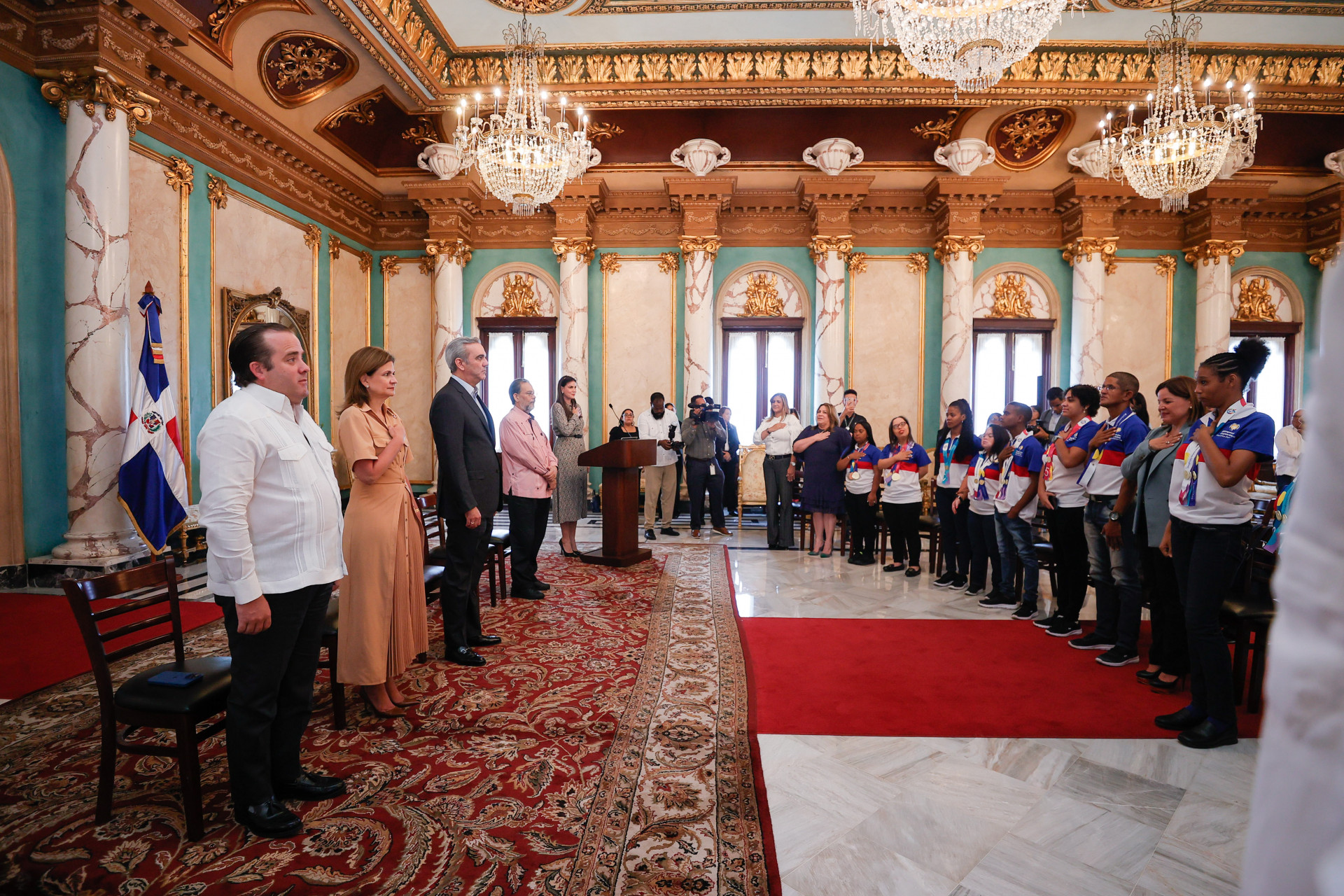 El presidente Luis Abinader, en compañía de la vicepresidenta Raquel Peña, sostuvo un encuentro con atletas dominicanos que participaron en las Olimpiadas Especiales, momento en el que se destacó el buen desempeño y el esfuerzo de los deportistas en esta competencia. Santo Domingo, República Dominicana, 31 de Julio 2023. Vp/ Jhon Escalante