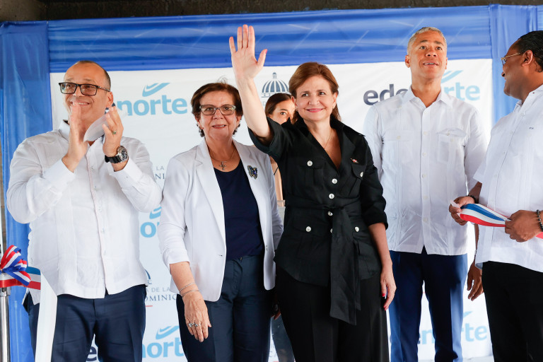 La vicepresidenta Raquel Peña inauguró la rehabilitación de las redes eléctricas y de iluminación, en el sector del Bambú, en Tenares. Tenares, República Dominicana, 07 de Julio 2023. Vp/ Jhon Escalante