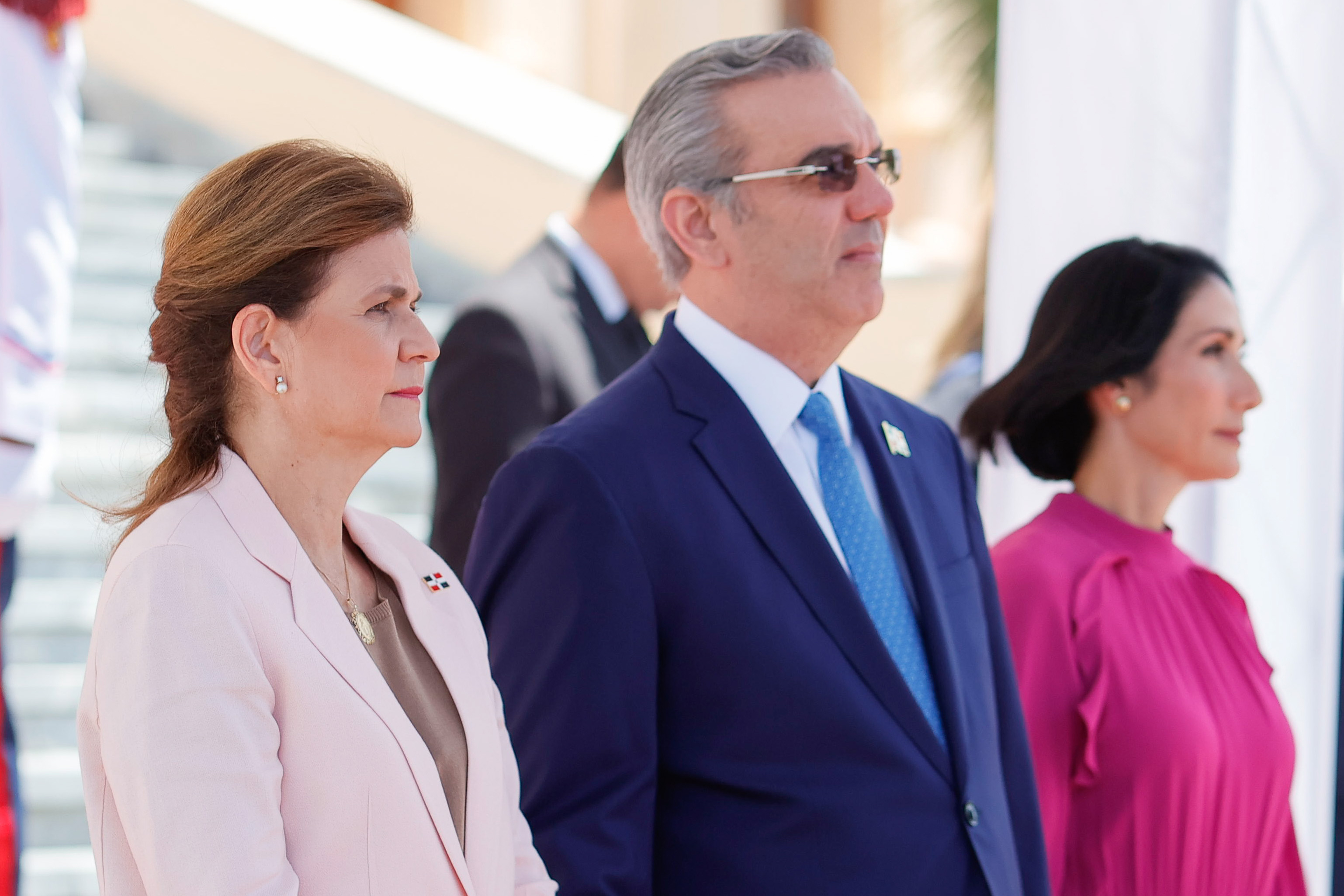 El presidente Luis Abinader, junto a la vicepresidenta Raquel Peña y la primera dama Raquel Arbaje, recibió a S. E. Mohamed Irfaan Ali, presidente de la República Cooperativa de Guyana, con quien sostendrá diversos encuentros que seguirán estrechando las relaciones diplomáticas entre ambas naciones. Santo Domingo, República Dominicana, 08 de Agosto 2023. Vp/ Jhon Escalante