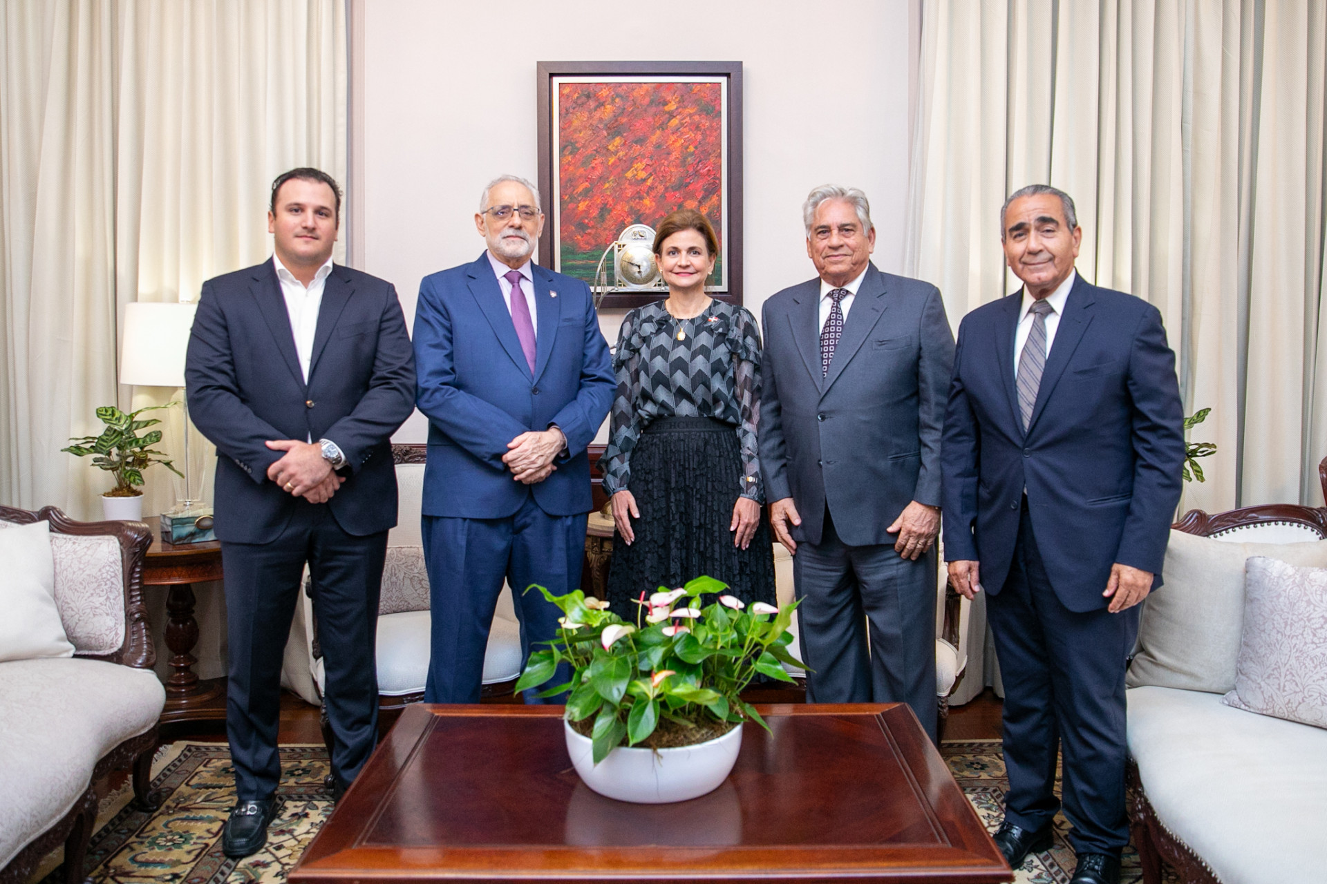 La vicepresidenta Raquel Peña recibió la visita de cortesía de los señores Vitelio Mejía y Winston Llenas, presidente y vicepresidente de la LIDOM, respectivamente; Víctor García, presidente del consejo directivo de las Águilas Cibaeñas y Alfredo Acebal, presidente del equipo de los Gigantes del Cibao. Santo Domingo, República Dominicana, 26 de Julio 2023. Vp/ Amehd Gitte
