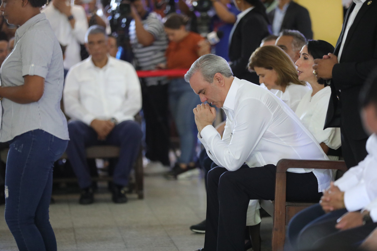 El presidente Luis Abinader, junto a la vicepresidenta Raquel Peña, la primera dama Raquel Arbaje y otros funcionarios, participaron en una misa en honor a las víctimas de la explosión de San Cristóbal. Santo Domingo, República Dominicana, 16 de Agosto 2023. Vp/ Amehd Gitte
