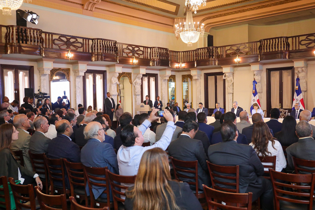 El presidente Luis Abinader, junto a la vicepresidenta Raquel Peña, encabezó un encuentro donde informó que durante estos tres años de gestión se han firmado 34 contratos, a través de las empresas distribuidoras de electricidad, para la generación de energía renovable en el país. Santo Domingo, República Dominicana, 30 de Agosto 2023. Vp/ Sintia Mendez