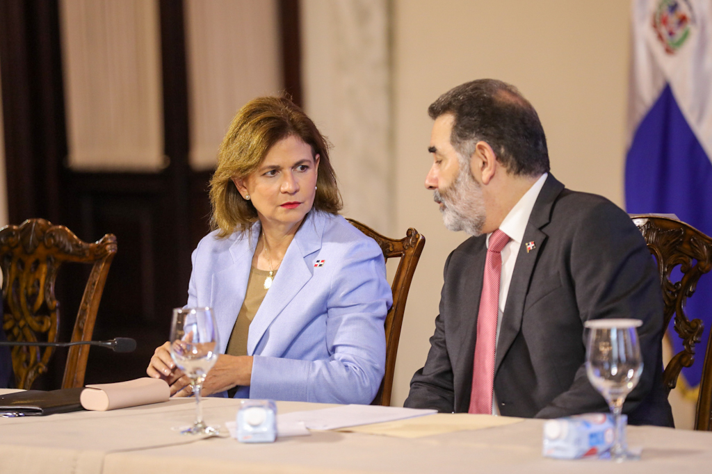 El presidente Luis Abinader, junto a la vicepresidenta Raquel Peña, encabezó un encuentro donde informó que durante estos tres años de gestión se han firmado 34 contratos, a través de las empresas distribuidoras de electricidad, para la generación de energía renovable en el país. Santo Domingo, República Dominicana, 30 de Agosto 2023. Vp/ Sintia Mendez