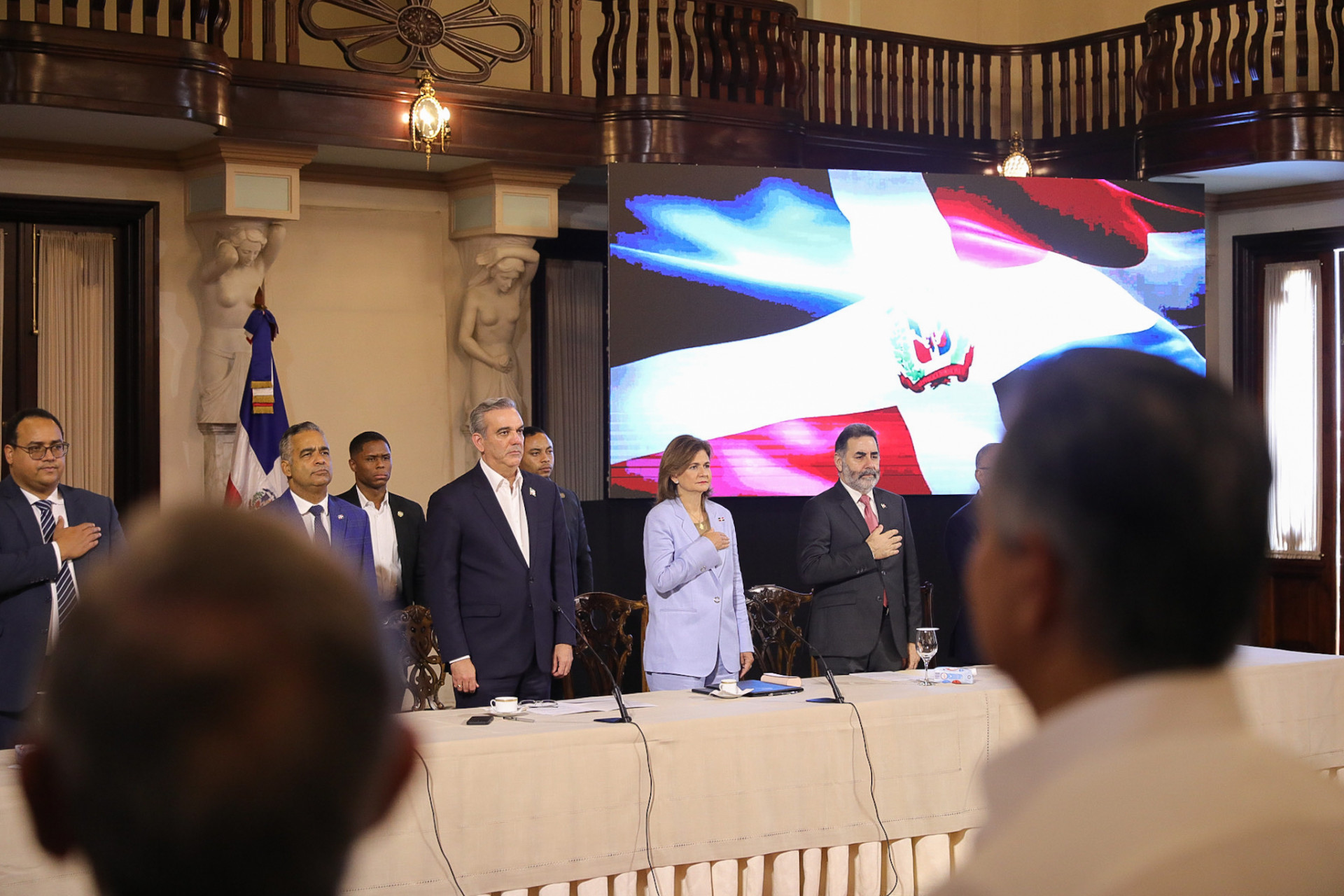 El presidente Luis Abinader, junto a la vicepresidenta Raquel Peña, encabezó un encuentro donde informó que durante estos tres años de gestión se han firmado 34 contratos, a través de las empresas distribuidoras de electricidad, para la generación de energía renovable en el país. Santo Domingo, República Dominicana, 30 de Agosto 2023. Vp/ Amehd Gitte