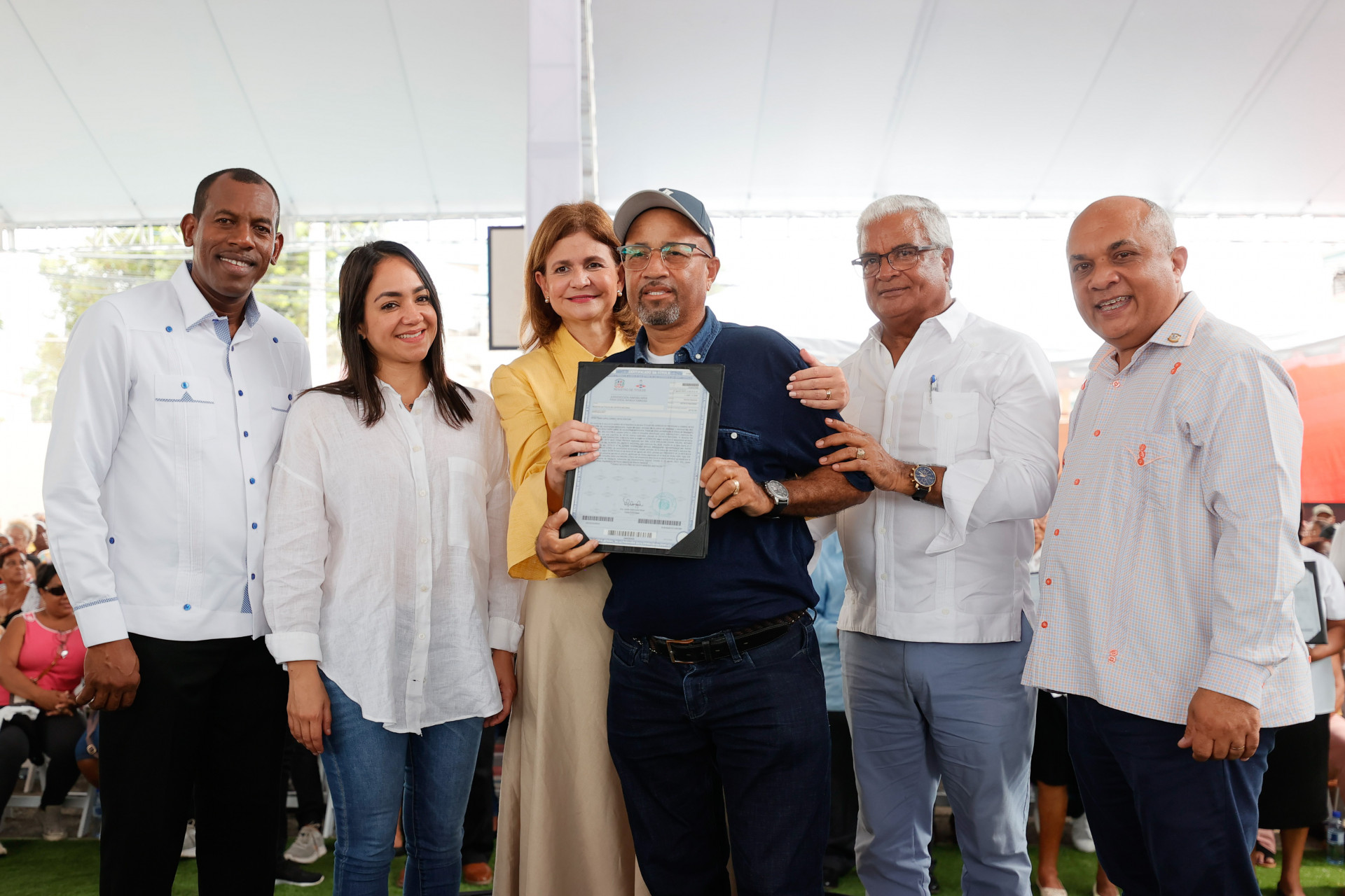 La vicepresidenta Raquel Peña entregó 420 títulos a moradores del sector Los Peralejos, una acción del Plan Nacional de Titulación. Santo Domingo, República Dominicana, 03 de Septiembre 2023. Vp/ Jhon Escalante