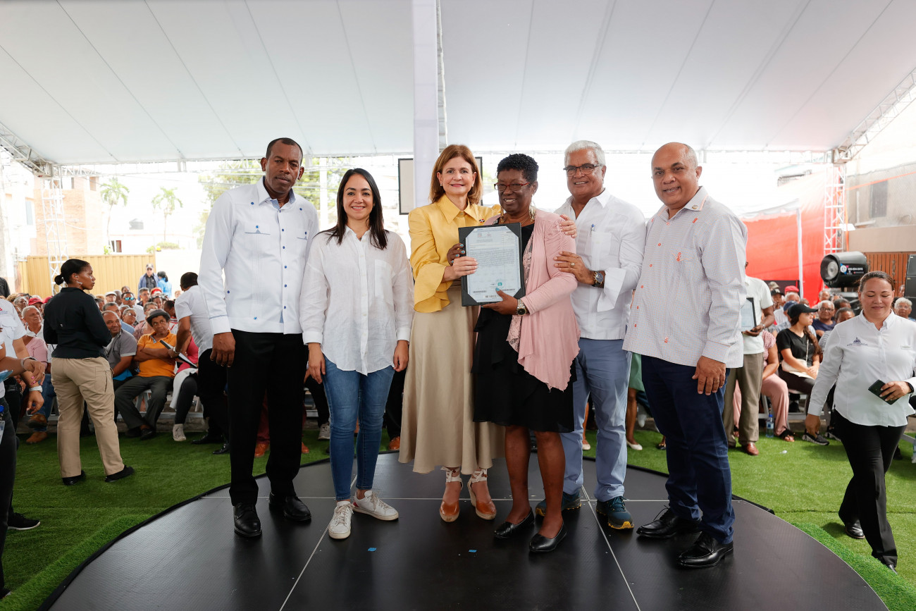 La vicepresidenta Raquel Peña entregó 420 títulos a moradores del sector Los Peralejos, una acción del Plan Nacional de Titulación. Santo Domingo, República Dominicana, 03 de Septiembre 2023. Vp/ Jhon Escalante