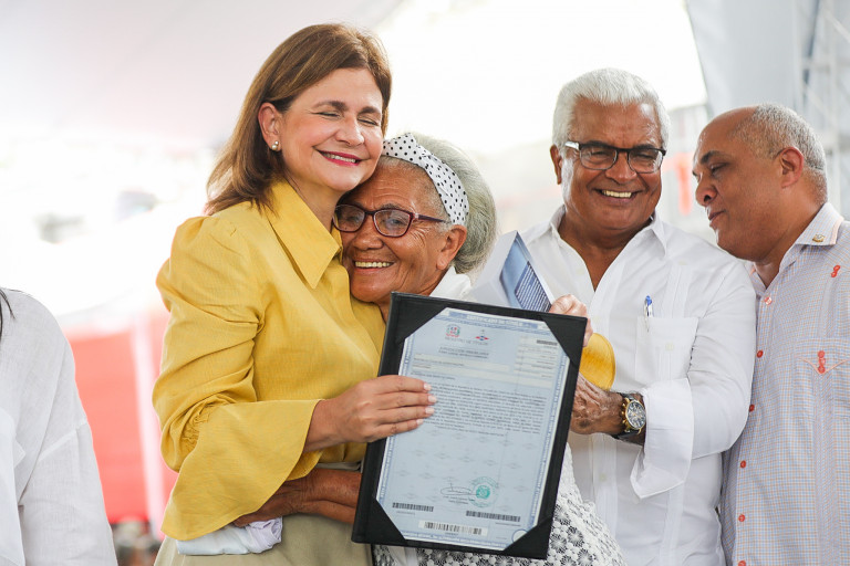 La vicepresidenta Raquel Peña entregó 420 títulos a moradores del sector Los Peralejos, una acción del Plan Nacional de Titulación. Santo Domingo, República Dominicana, 03 de Septiembre 2023. Vp/ Sintia Méndez