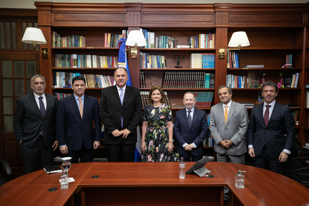 La vicepresidenta Raquel Peña estuvo reunida con los señores Jorge Arbache y Emilio Uquillas Freire, representantes del Banco de Desarrollo de América Latina y el Caribe, entidad financiera que trabaja por el fortalecimiento de la calidad de vida de la región. Santo Domingo, República Dominicana, 07 de Septiembre 2023. Vp/ Pedro Rodriguez
