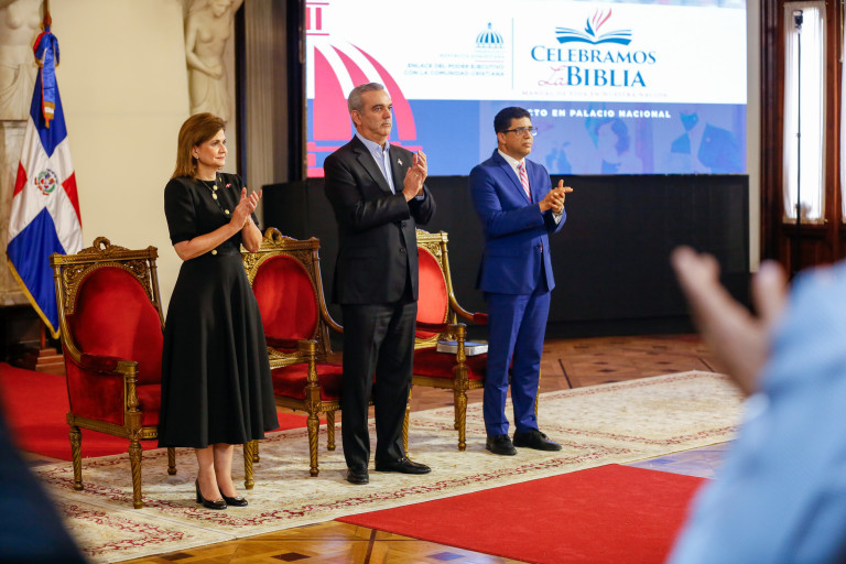 El presidente Luis Abinader y la vicepresidenta Raquel Peña asistieron al acto de conmemoración del Día Nacional de la Biblia. Santo Domingo, República Dominicana, 28 de Septiembre 2023. Vp/ Felix Hirujo