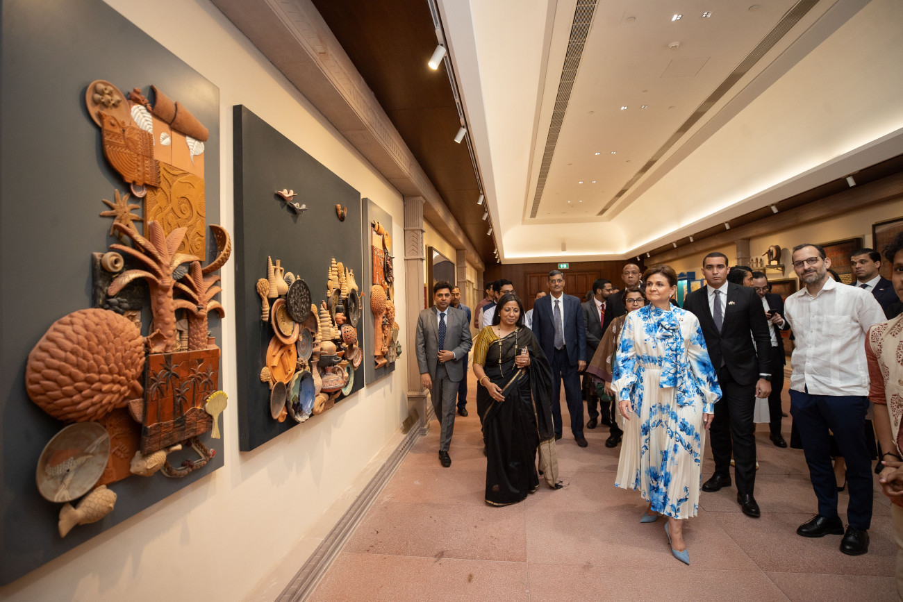 La vicepresidenta Raquel Peña visitó el nuevo parlamento indio para sostener un encuentro con el honorable presidente del Lok Sabha (la Cámara Baja), el señor Om Birla. Nueva Delhi, La India, 03 de Octubre 2023. Vp/ Jhon Escalante