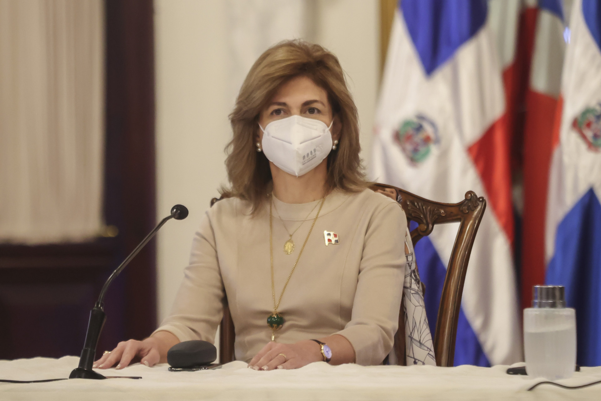 El presidente Luis Abinader y la vicepresidenta Raquel Peña encabezan rueda de prensa sobre la disminución del déficit 2020 junto al Ministro de Hacienda y el Director de Presupuesto. Santo Domingo, República Dominicana. 6 de Enero 2021. Vp/ Jhon Escalante