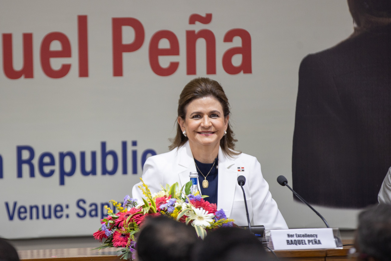 La vicepresidenta Raquel Peña estuvo en el Consejo Indio de Asuntos Mundiales (ICWA, por sus siglas en inglés), donde disertó frente a un auditorio compuesto por académicos, empresarios y diplomáticos, sobre los atributos y el potencial que hacen de la República Dominicana un destino atractivo para las inversiones en el Caribe. Nueva Delhi, La India, 04 de Octubre 2023. Vp/ Jhon Escalante