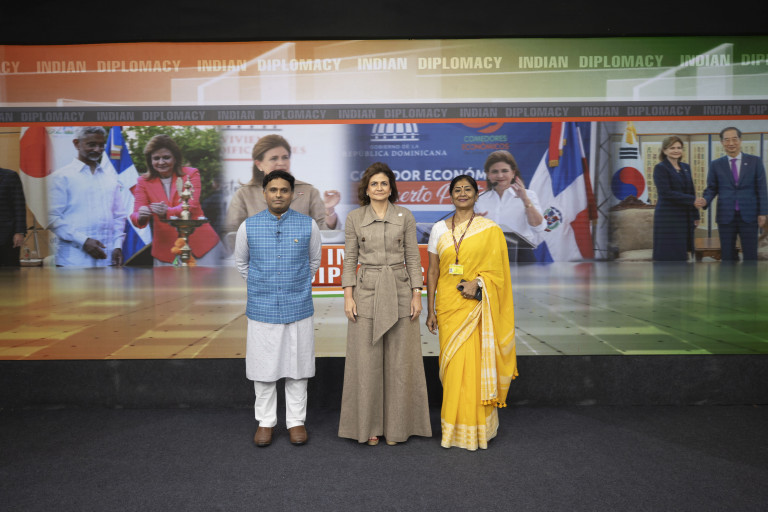 La vicepresidenta Raquel Peña participó en el programa Indian Diplomacy, transmitido por la emisora nacional Doordarshan, medio oficial del Ministerio de Información y Radiodifusión del Gobierno indio. . Nueva Delhi, La India, 05 de Octubre 2023. Vp/ Jhon Escalante