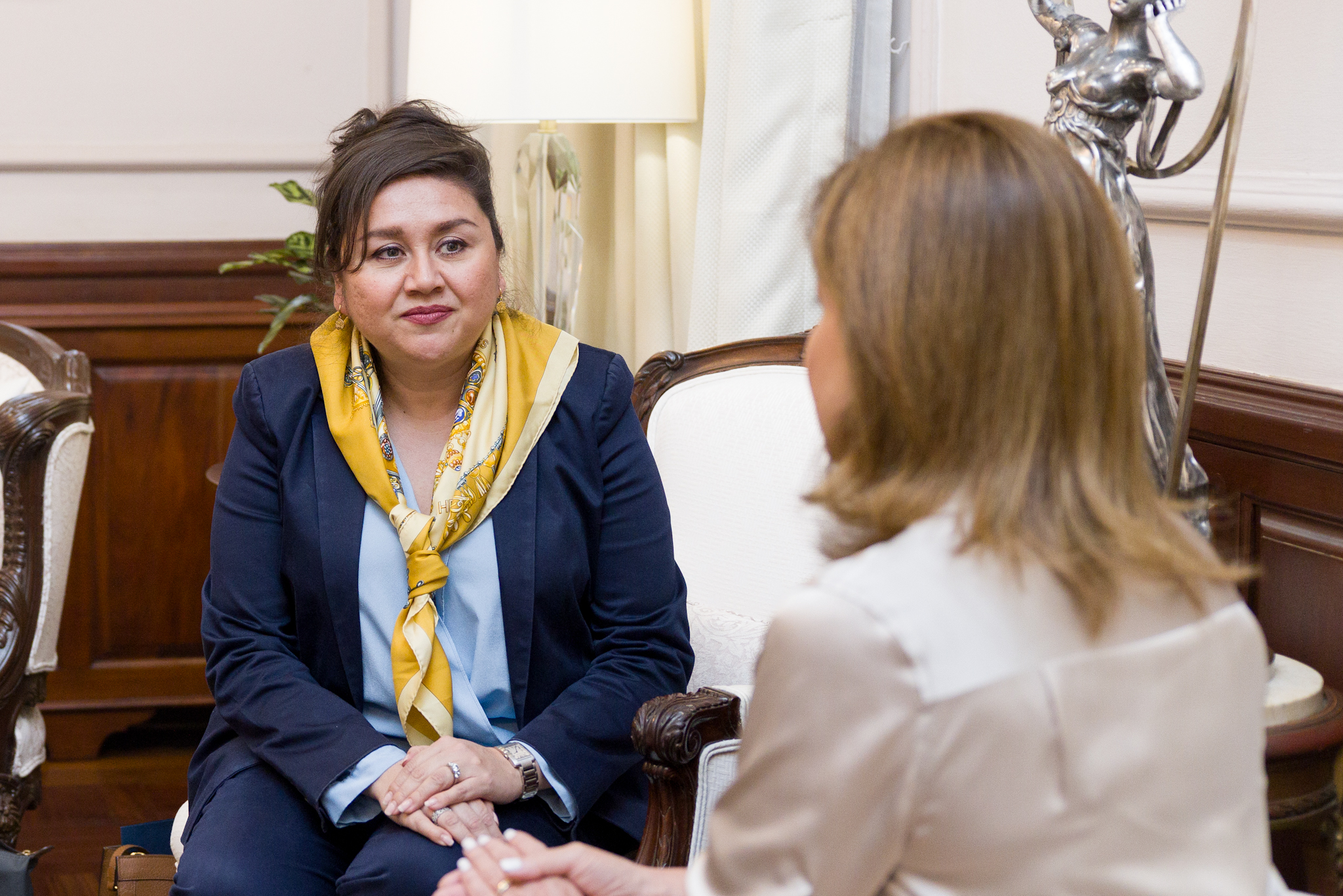 La vicepresidenta Raquel Peña recibió la visita de la señora Patricia Aguilera, quien recientemente asumió el cargo de encargada de Negocios en la Embajada de los Estados Unidos en el país. Santo Domingo, República Dominicana. 10 de Octubre 2023. Vp/ Amehd Gitte