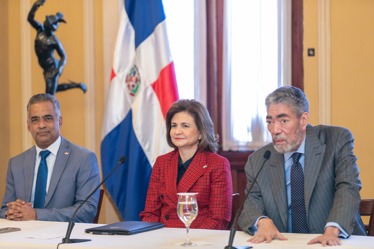 Con el fin de seguir fortaleciendo los vínculos entre ambas naciones, la vicepresidenta Raquel Peña, en compañía de los ministros Joel Santos y Limber Cruz, recibió a una delegación de la República Popular China, encabezada por su embajador en el país, S. E. Chen Luning. Santo Domingo, República Dominicana. 23 de Octubre 2023. VP/ Pedro Rodriguez