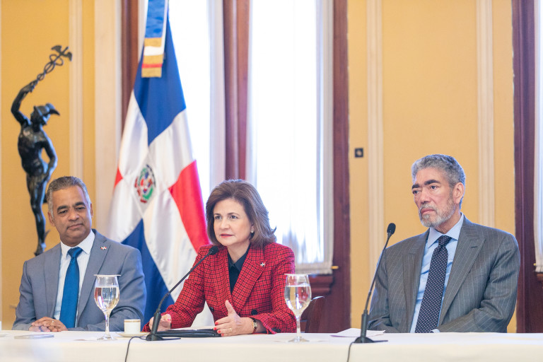Con el fin de seguir fortaleciendo los vínculos entre ambas naciones, la vicepresidenta Raquel Peña, en compañía de los ministros Joel Santos y Limber Cruz, recibió a una delegación de la República Popular China, encabezada por su embajador en el país, S. E. Chen Luning. Santo Domingo, República Dominicana. 23 de Octubre 2023. VP/ Pedro Rodriguez