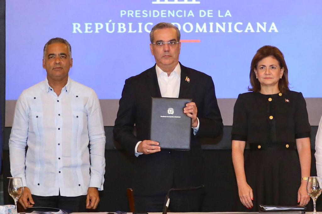 El presidente Luis Abinader, junto a la vicepresidenta Raquel Peña y otros funcionarios, firmó el «Pacto Nacional para la Formulación y Ejecución de Políticas de Estado frente a la Situación de Haití».