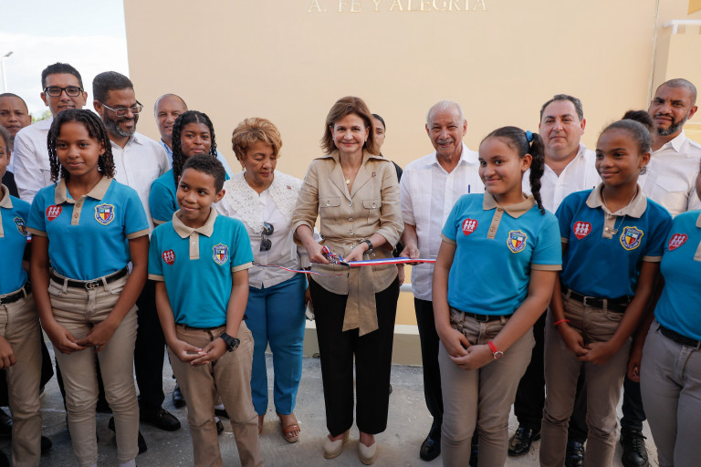 La vicepresidenta Raquel Peña dejó inaugurado el «Politécnico San Bartolomé Apóstol Fe y Alegría», en Bahoruco, en el que más de 500 estudiantes serán beneficiados con 15 nuevas aulas." Santo Domingo, República Dominicana, 29 de Octubre 2023. Vp/ Felix Hirujo