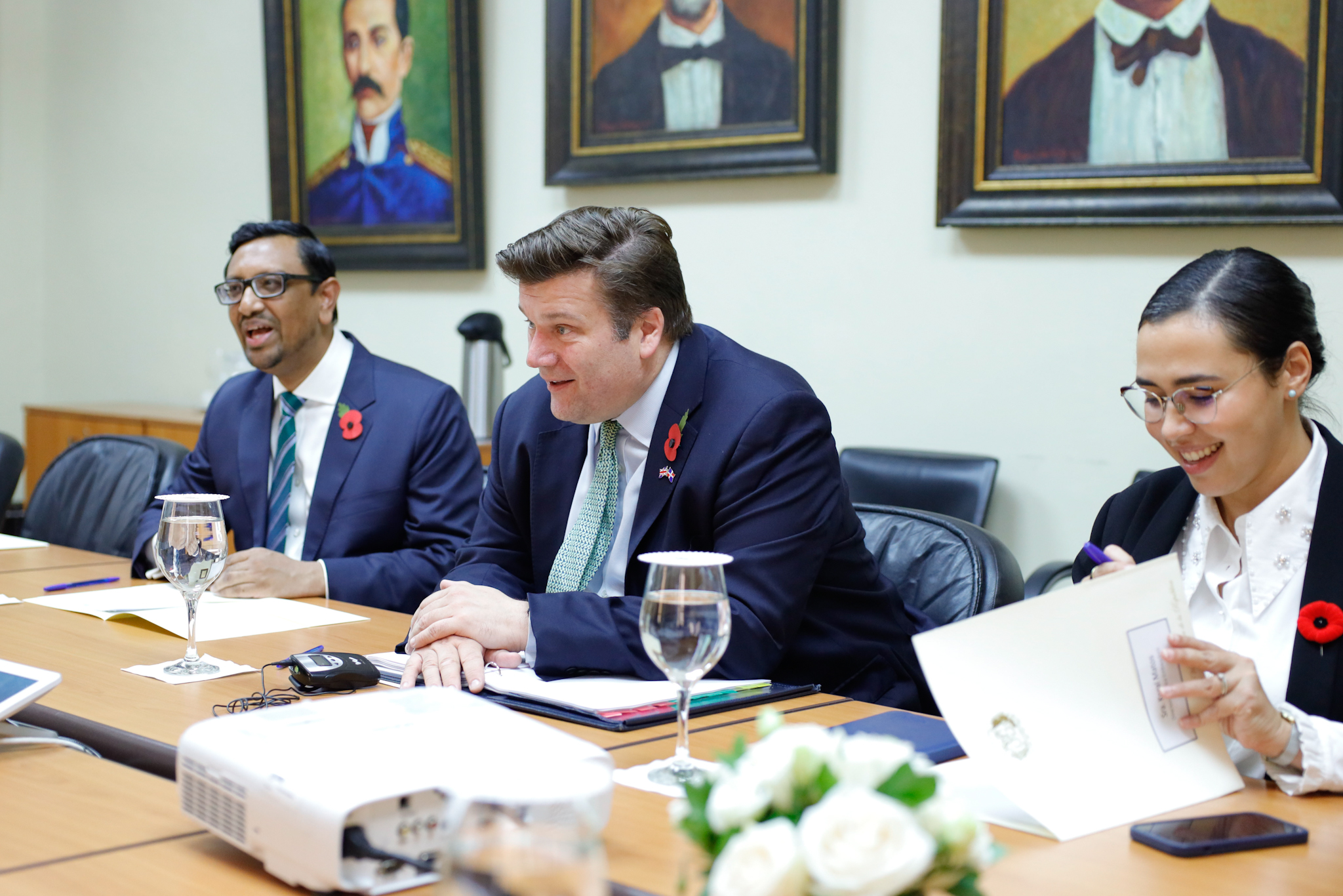 La vicepresidenta Raquel Peña recibió la visita del ministro de las Fuerzas Armadas del Reino Unido, el señor James Heappey, quien asistió acompañado del embajador de esa nación en la RD, S. E. Mockbul Ali, y otras autoridades. En este encuentro, conversaron sobre el fortalecimiento de la cooperación en materia de seguridad y defensa. Santo Domingo, República Dominicana, 2 de Noviembre 2023. Vp/ Amehd Gitte