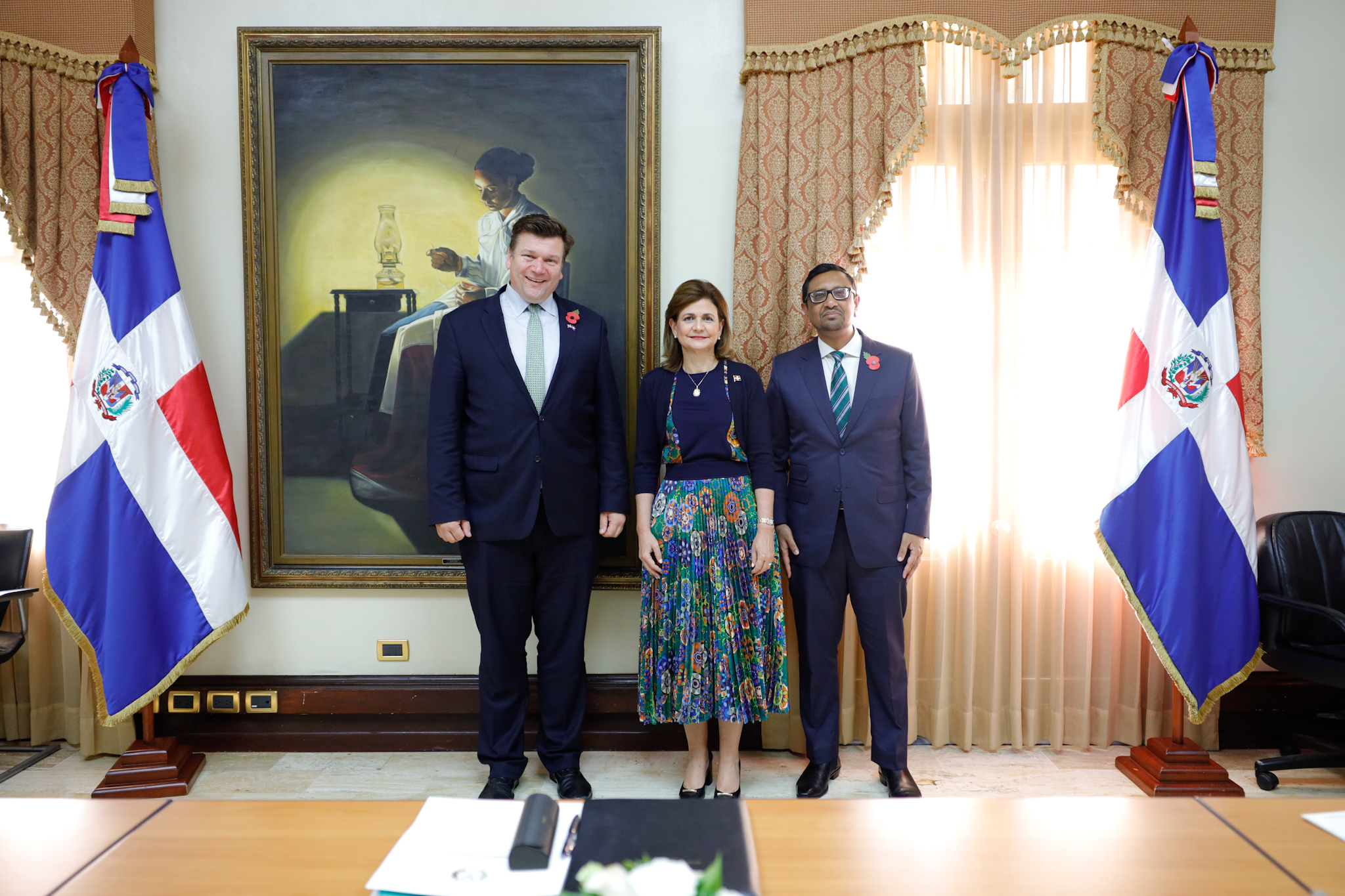 La vicepresidenta Raquel Peña recibió la visita del ministro de las Fuerzas Armadas del Reino Unido, el señor James Heappey, quien asistió acompañado del embajador de esa nación en la RD, S. E. Mockbul Ali, y otras autoridades. En este encuentro, conversaron sobre el fortalecimiento de la cooperación en materia de seguridad y defensa. Santo Domingo, República Dominicana, 2 de Noviembre 2023. Vp/ Amehd Gitte