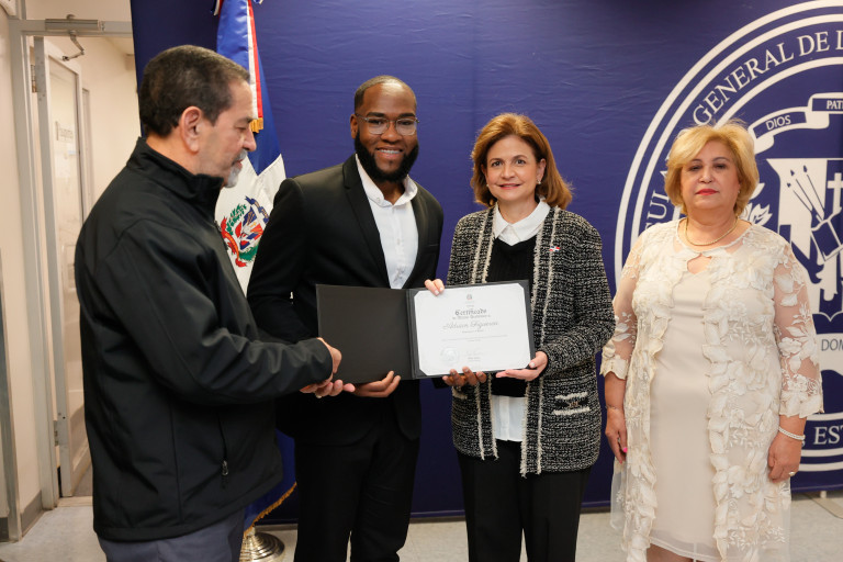 La vicepresidenta Raquel Peña, junto al cónsul general de la República Dominicana en New York, EE. UU., el Sr. Eligio Jáquez, reconoció al Sr. José Gomérez, primer dominicano en ser comisionado de la Policía del Estado de New York. Asimismo, fue reconocida la Sra. Wendy García, primera dominicana en designarse comisionada de Equidad e Inclusión del Departamento de Policía de la ciudad de New York, que ha logrado el más alto rango a lo interno de este organismo. Santo Domingo, República Dominicana, 11 de Noviembre 2023. Vp/ Jhon Escalante