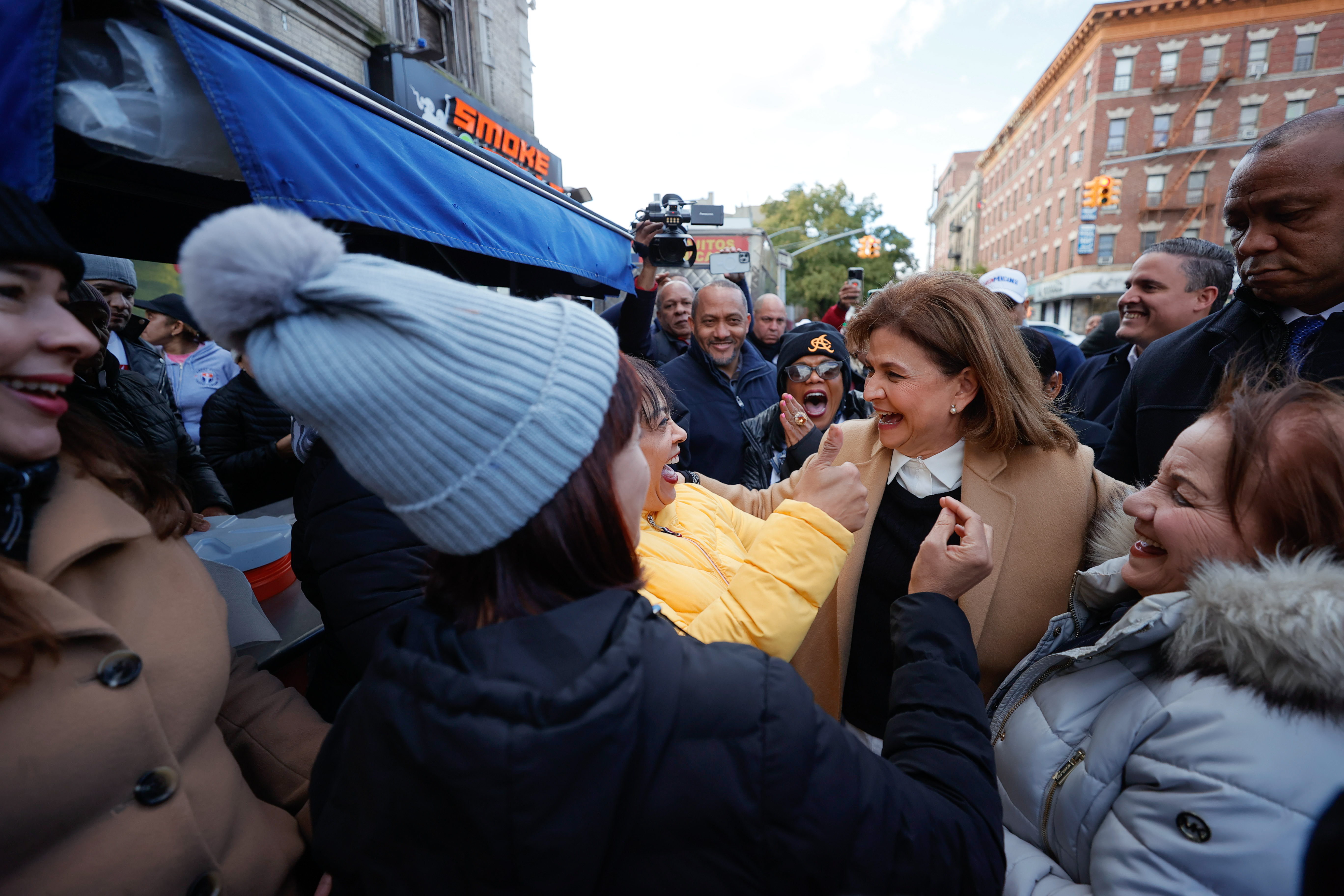 La vicepresidenta Raquel Peña, durante su visita a New York, visitó el Alto Manhattan y compartió con doña Nena, emprendedora con un puesto de habichuelas con dulce. Santo Domingo, República Dominicana, 11 de Noviembre 2023. Vp/ Jhon Escalante