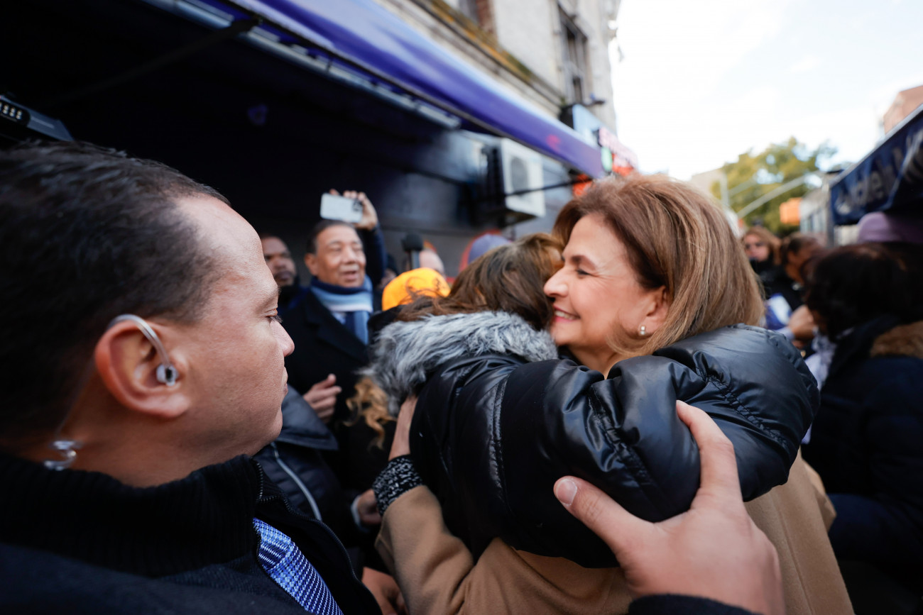 La vicepresidenta Raquel Peña, durante su visita a New York, visitó el Alto Manhattan y compartió con doña Nena, emprendedora con un puesto de habichuelas con dulce. Santo Domingo, República Dominicana, 11 de Noviembre 2023. Vp/ Jhon Escalante