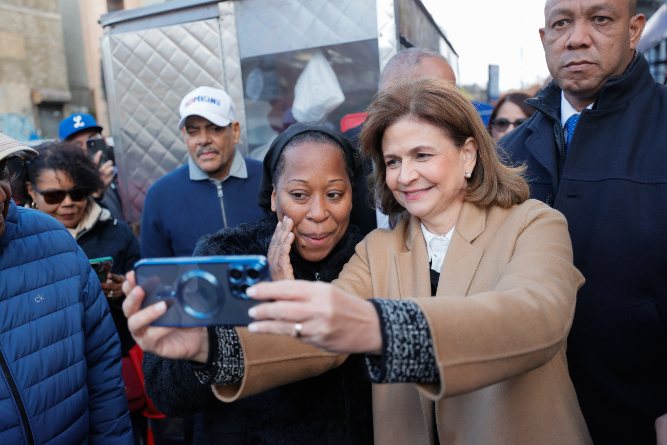 La vicepresidenta Raquel Peña, durante su visita a New York, visitó el Alto Manhattan y compartió con doña Nena, emprendedora con un puesto de habichuelas con dulce. Santo Domingo, República Dominicana, 11 de Noviembre 2023. Vp/ Jhon Escalante
