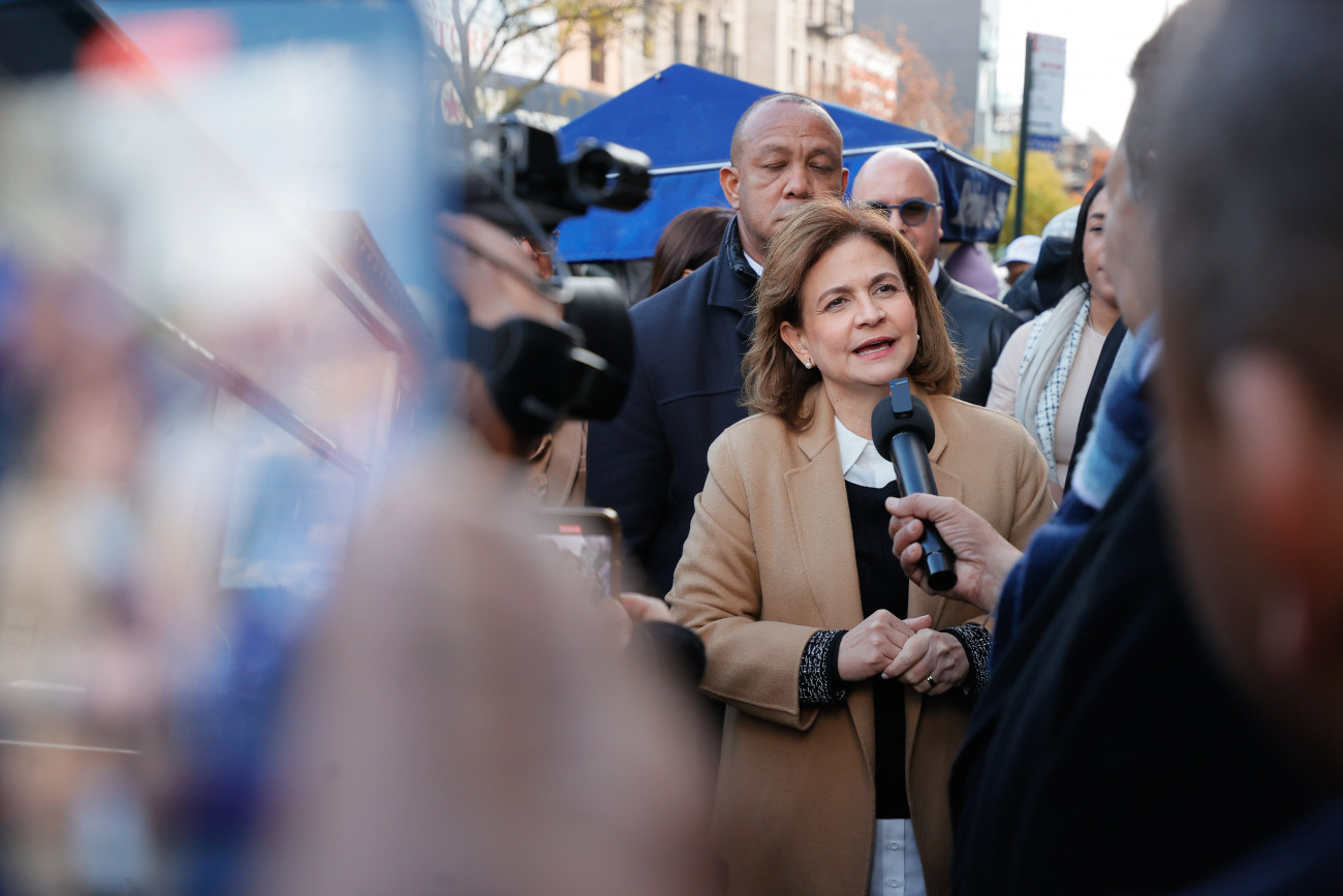 La vicepresidenta Raquel Peña, durante su visita a New York, visitó el Alto Manhattan y compartió con doña Nena, emprendedora con un puesto de habichuelas con dulce. Santo Domingo, República Dominicana, 11 de Noviembre 2023. Vp/ Jhon Escalante