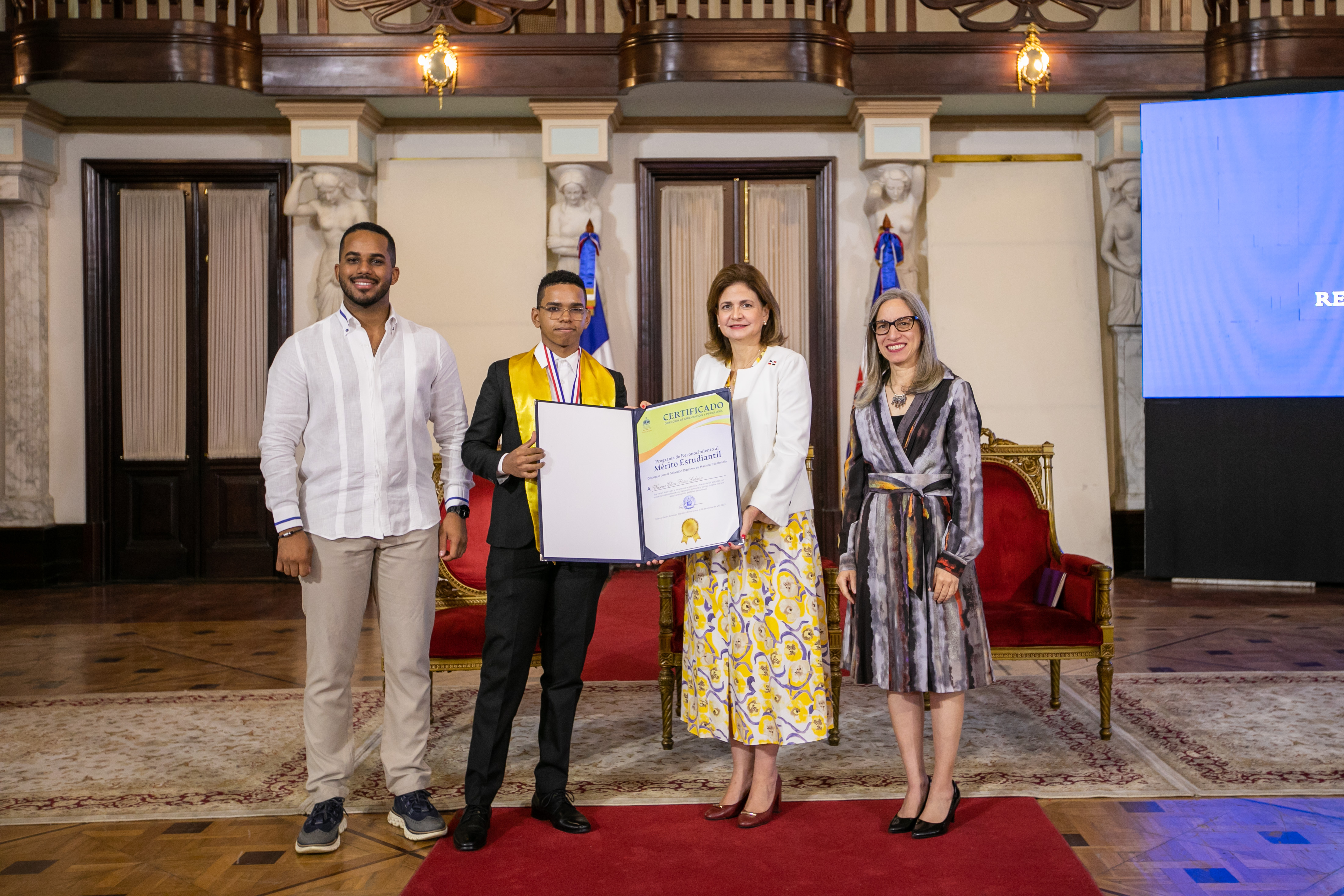 En representación del presidente Luis Abinader, la vicepresidenta Raquel Peña encabezó el acto de entrega del Reconocimiento al Mérito Estudiantil, otorgado por el Ministerio de Educación, que destaca el desempeño de jóvenes de todo el país por haber alcanzado el más alto nivel en sus calificaciones. Santo Domingo, República Dominicana. 17 de Noviembre 2023. VP/ Sintia Méndez