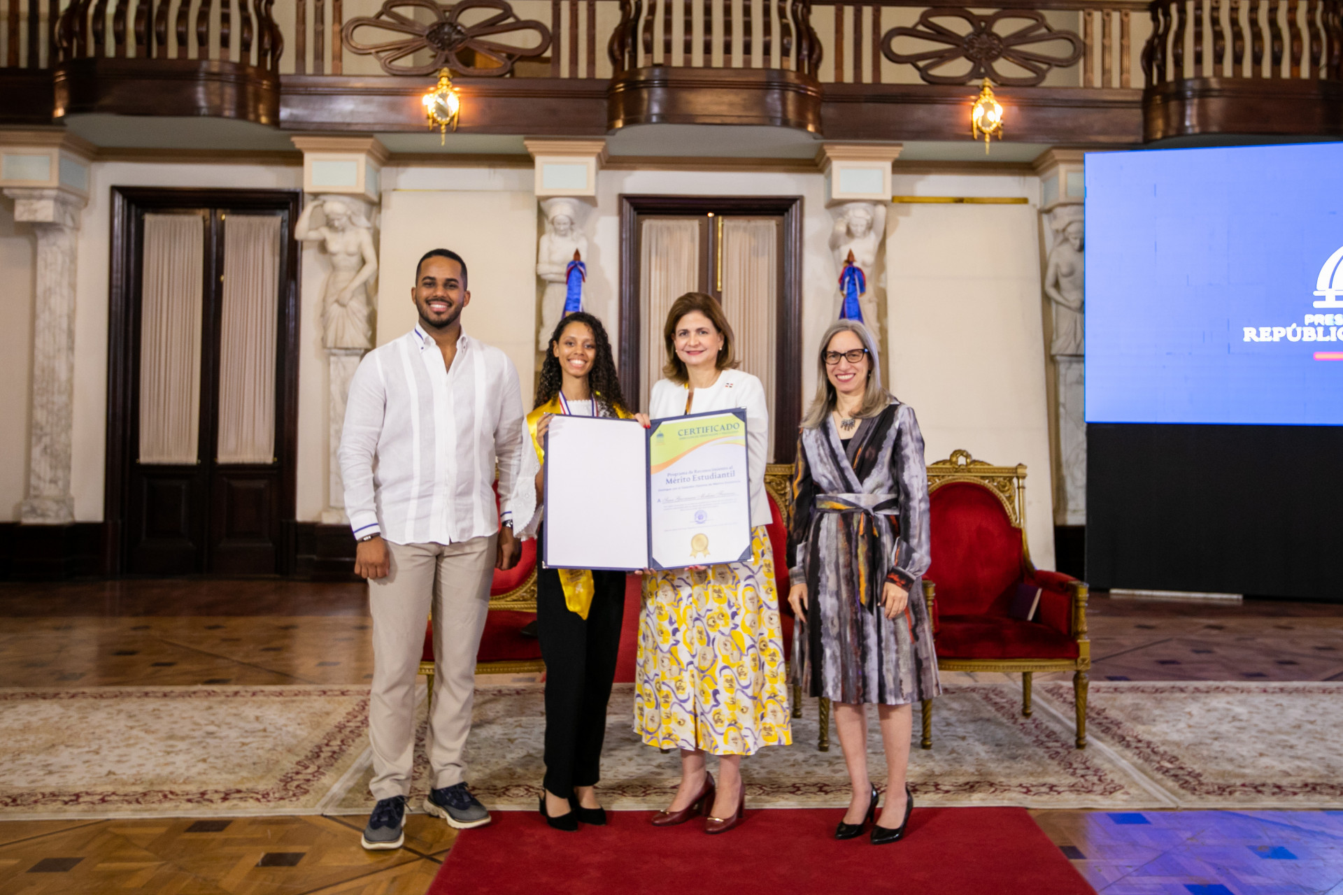 En representación del presidente Luis Abinader, la vicepresidenta Raquel Peña encabezó el acto de entrega del Reconocimiento al Mérito Estudiantil, otorgado por el Ministerio de Educación, que destaca el desempeño de jóvenes de todo el país por haber alcanzado el más alto nivel en sus calificaciones. Santo Domingo, República Dominicana. 17 de Noviembre 2023. VP/ Sintia Méndez