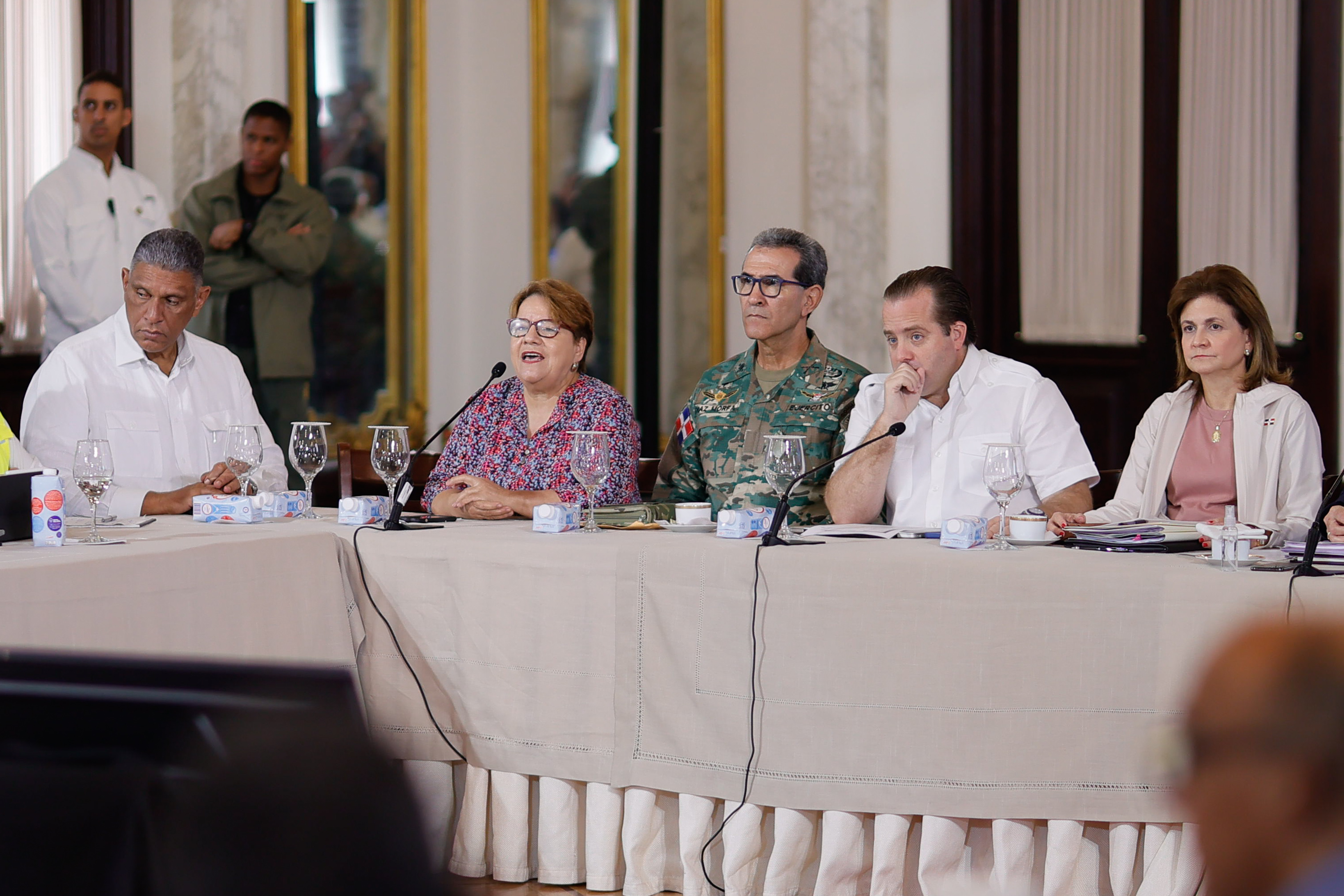 Como parte del seguimiento a las acciones que el Gobierno ha desplegado para mitigar los daños por el paso del fenómeno atmosférico en el país, el presidente Luis Abinader encabezó una reunión junto a la vicepresidenta Raquel Peña, ministros y autoridades de los organismos de emergencia. Santo Domingo, República Dominicana. 19 de Noviembre 2023. VP/ Jhon Escalante