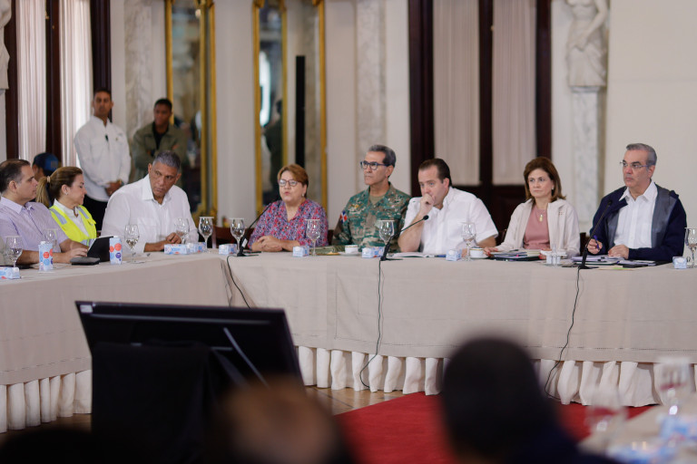 Como parte del seguimiento a las acciones que el Gobierno ha desplegado para mitigar los daños por el paso del fenómeno atmosférico en el país, el presidente Luis Abinader encabezó una reunión junto a la vicepresidenta Raquel Peña, ministros y autoridades de los organismos de emergencia. Santo Domingo, República Dominicana. 19 de Noviembre 2023. VP/ Jhon Escalante