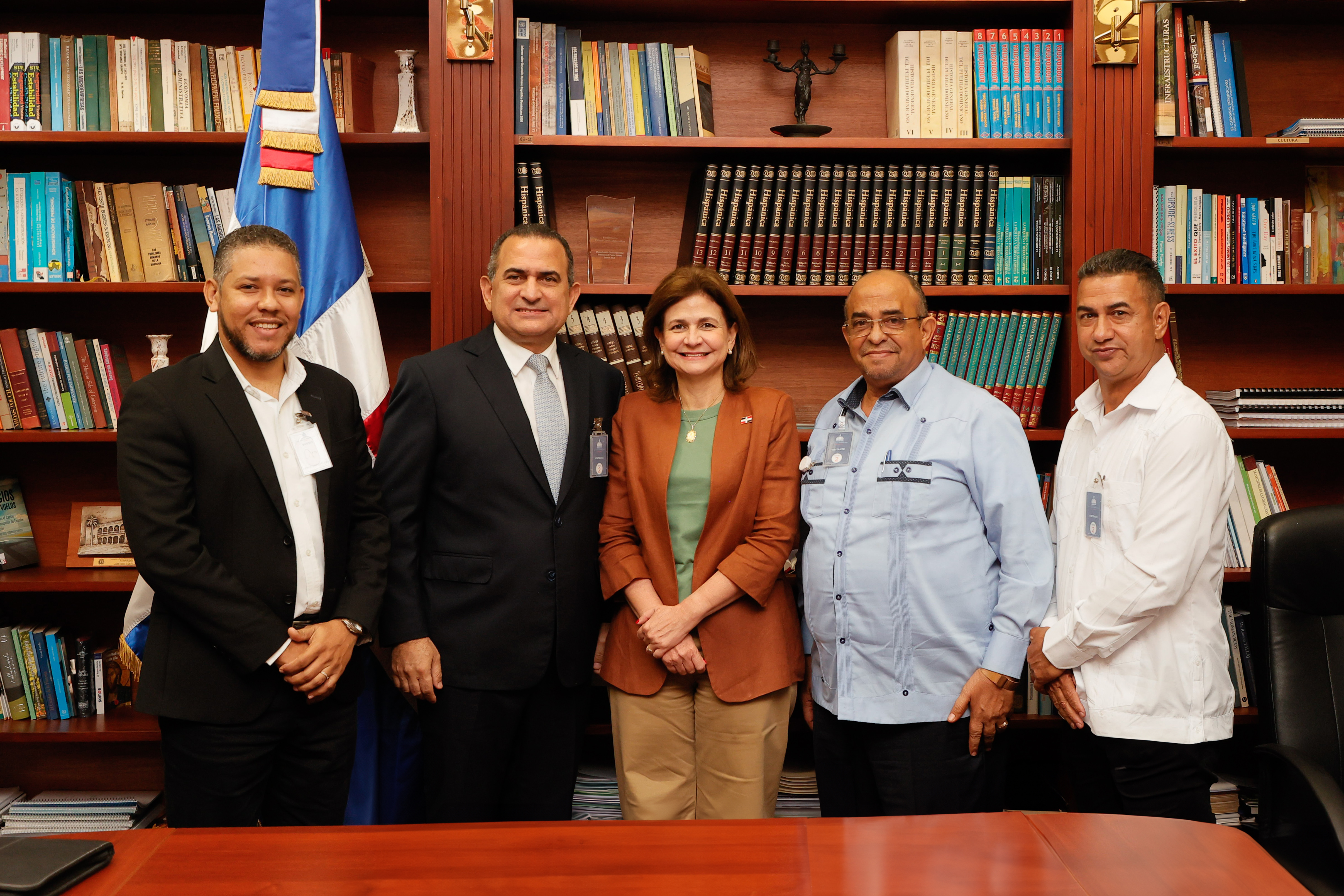 La vicepresidenta Raquel Peña recibió la visita de la señora Digna Reynoso, directora de la Dirección General de Pasaporte, así como a los señores Lorenzo Ramírez, director del INDOCAL y Juan Ramón Rosario, presidente de la Comisión de Defensa Comercial.