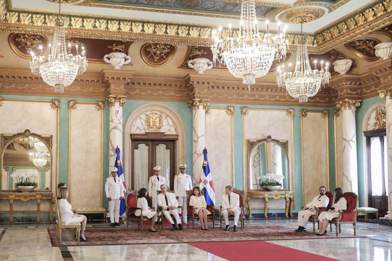 El presidente Luis Abinader, en compañía de la vicepresidenta Raquel Peña y el ministro del Ministerio de Relaciones Exteriores, el señor Roberto Álvarez, encabezó el acto de presentación de Cartas Credenciales de nuevos representantes diplomáticos que, a partir de hoy, estarán acreditados en la República Dominicana. Santo Domingo, República Dominicana, 28 de Noviembre 2023. Vp/ Felix Hirujo